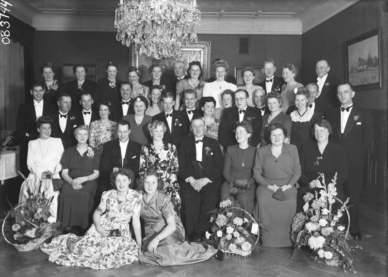Gruppbild, finklädda deltagare.