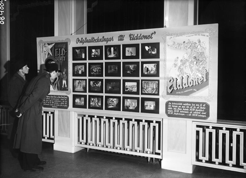 Affischer och originalteckningar till svensk tecknad film "Elddonet". Scania, Malmö biografer.