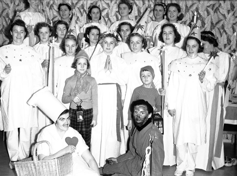 Gruppbild int. - Lucia med tärnor och tomte. MAS - Psykiatriska avd. C.