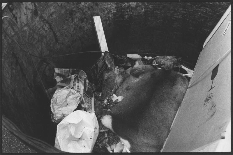 I hamnen finns det också plats för det mystiska: här är resterna av ett rådjur bland soporna intill snickeriet.