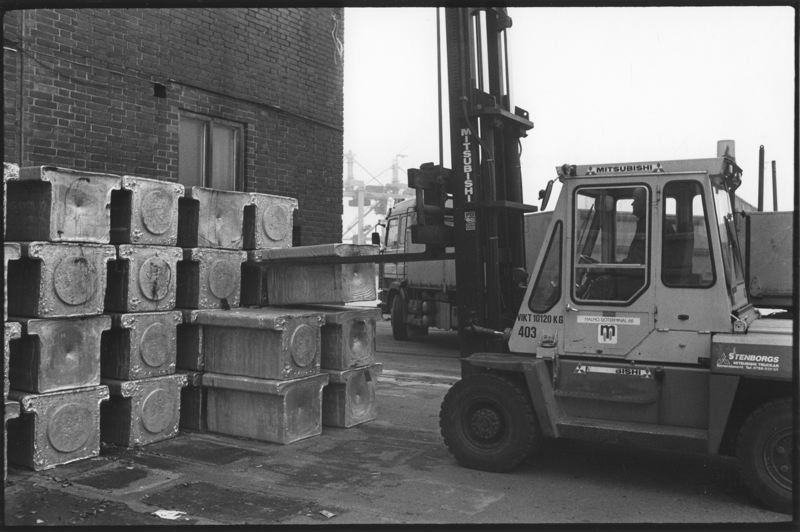 LQA 000352 :: stuveri, stuveriarbete, truck, truckar, last, lastning, aluminiumgöt