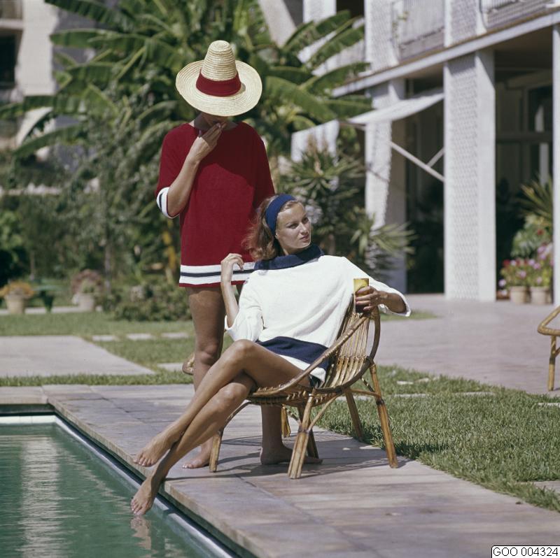 - LAVINIA. Modeller klädda i vinröd tröja med svart- och vit kant i ärm och linning samt vit tröja med blå halslinning och bred kant nertill på tröjan. Stråhatt med rött band samt blått hårband. Modebild såld via bildbyrån "Tio Fotografer"