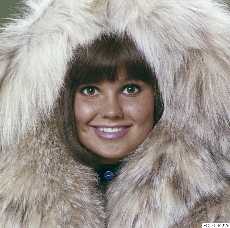 Modell klädd i päls. Rosa läppstift, eyeliner, mascara och ögonskugga. ADDO-kalender. Modebild såld via bildbyrån "Tio Fotografer"