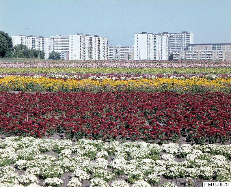 Blomodlingar, hyreshus i bakgrunden, Lorensborg