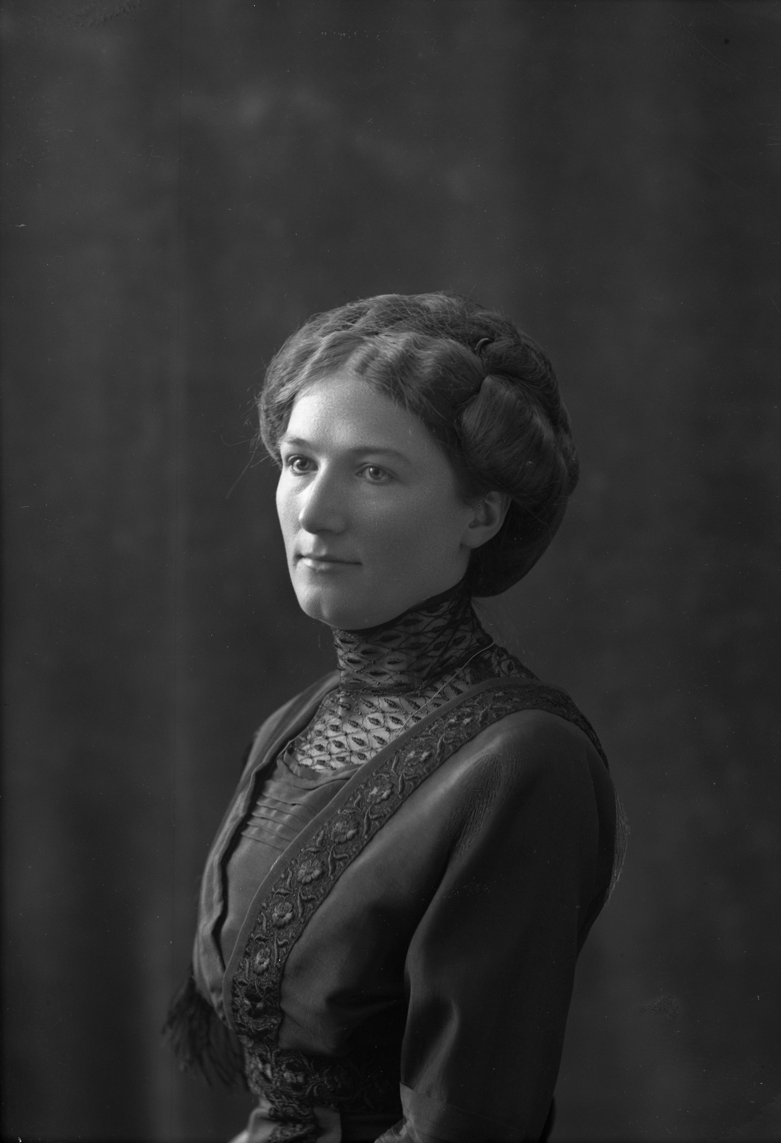 Porträtt i halvfigur av Anna Ohlsson, kokerska.