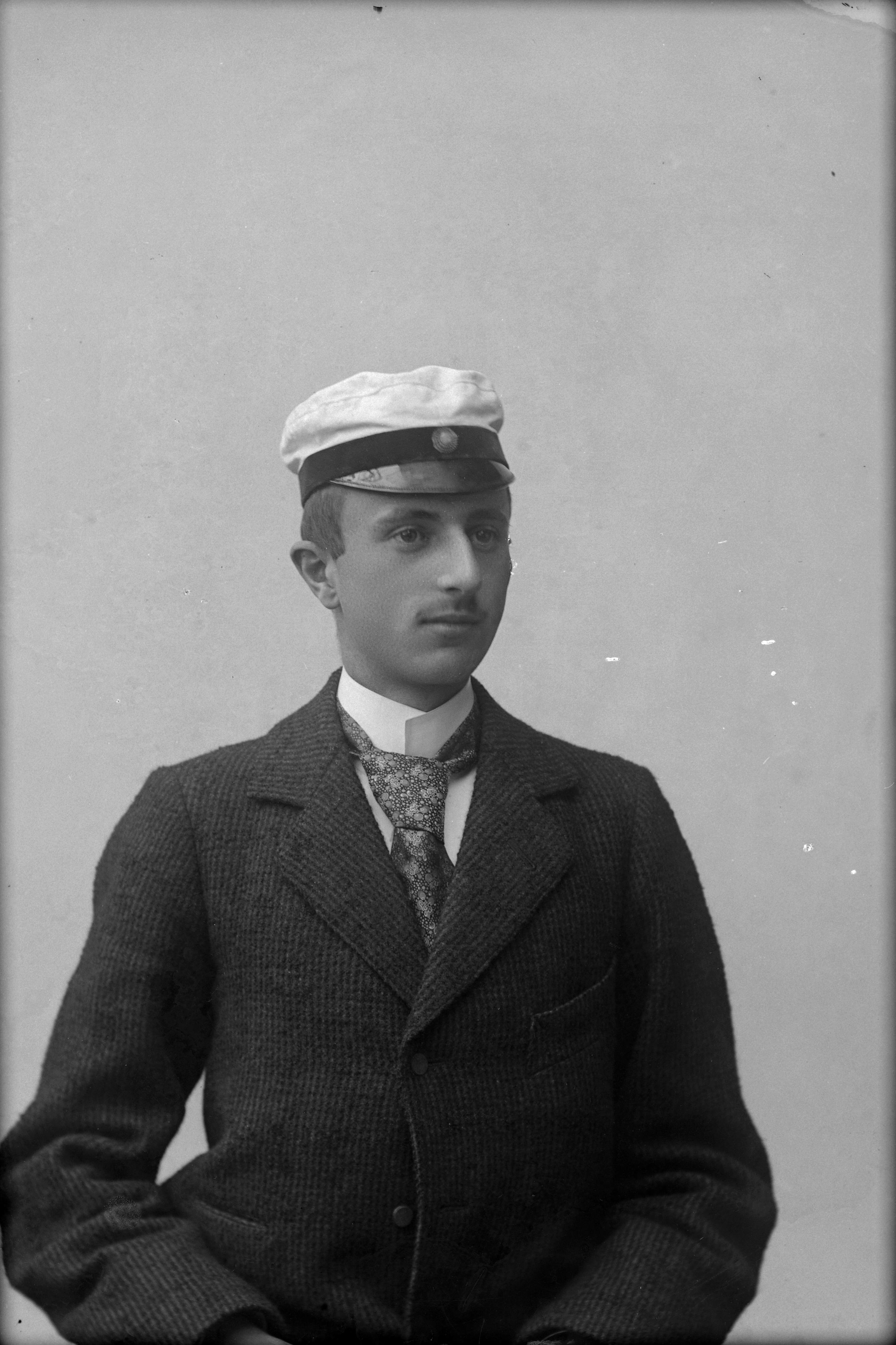 Porträtt i halvfigur av Hans Selander, iklädd studentmössa.