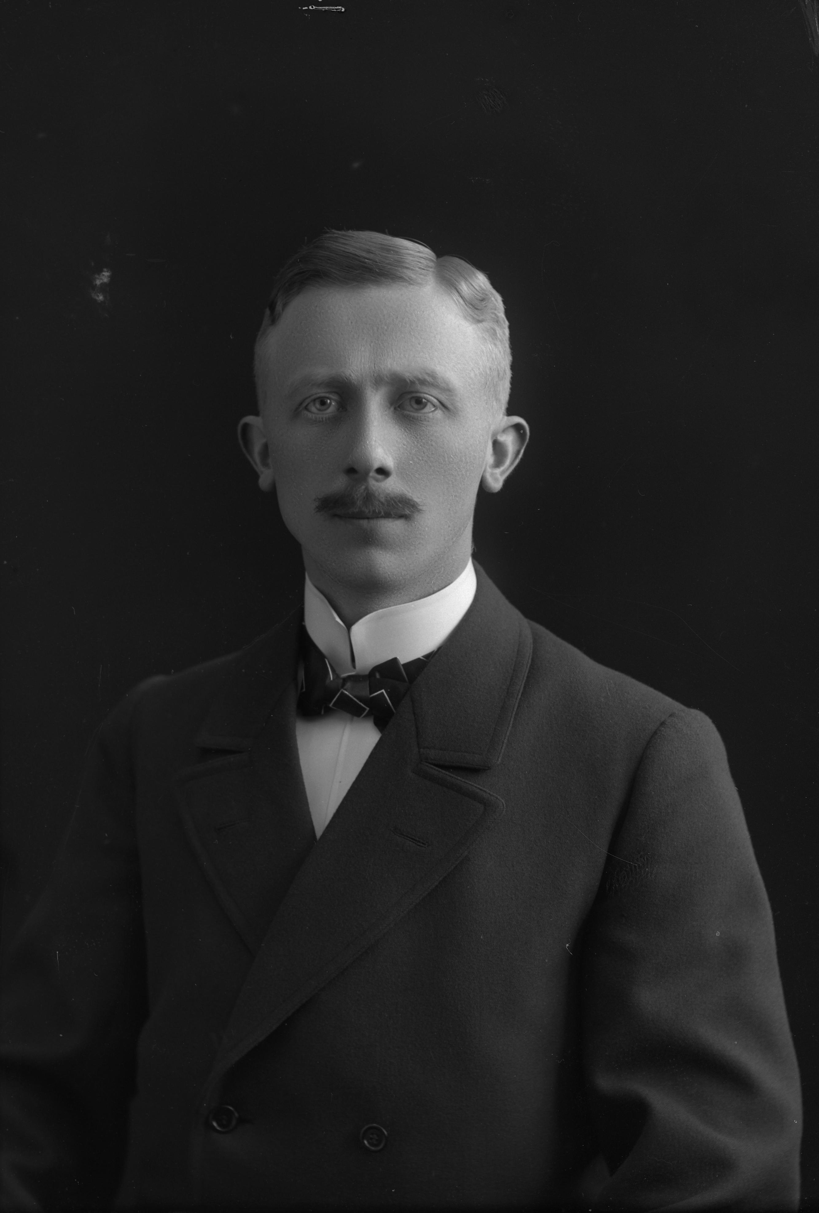 Porträtt i halvfigur av bankmannen Gustaf Lindell.