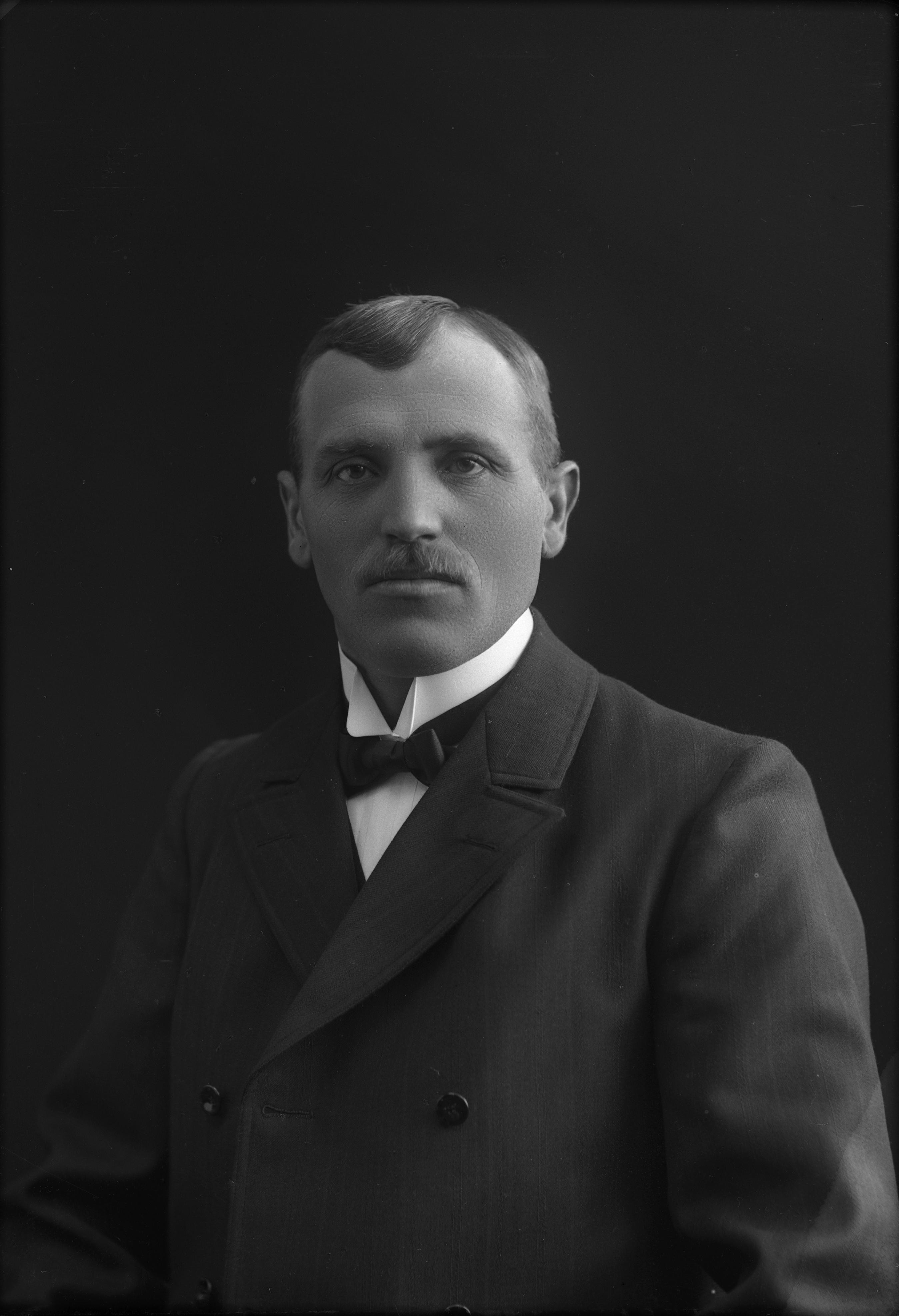 Porträtt i halvfigur av hemmansägare Lars Persson i Lockarp.