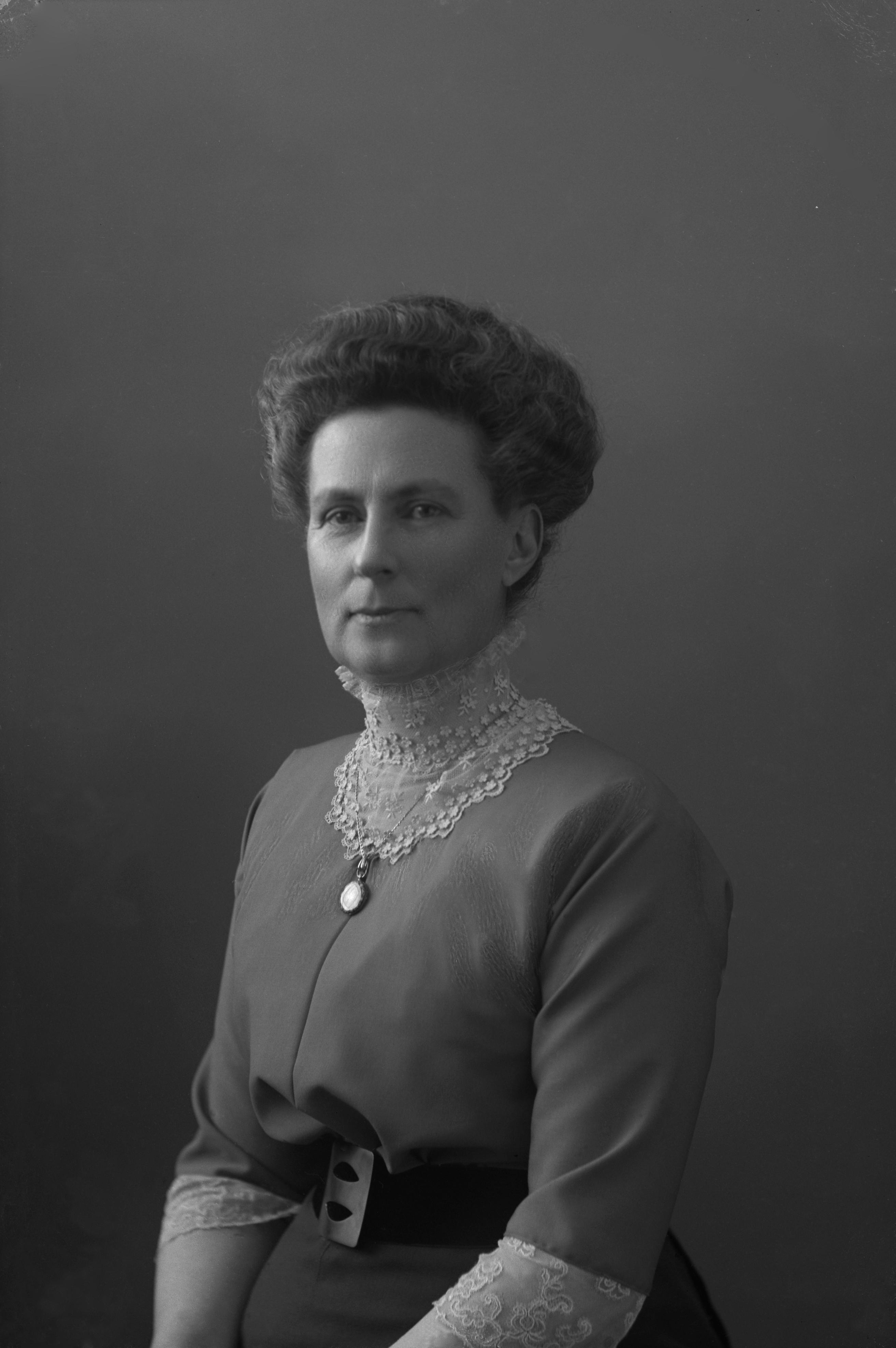 Porträtt i halvfigur av fru Ström.