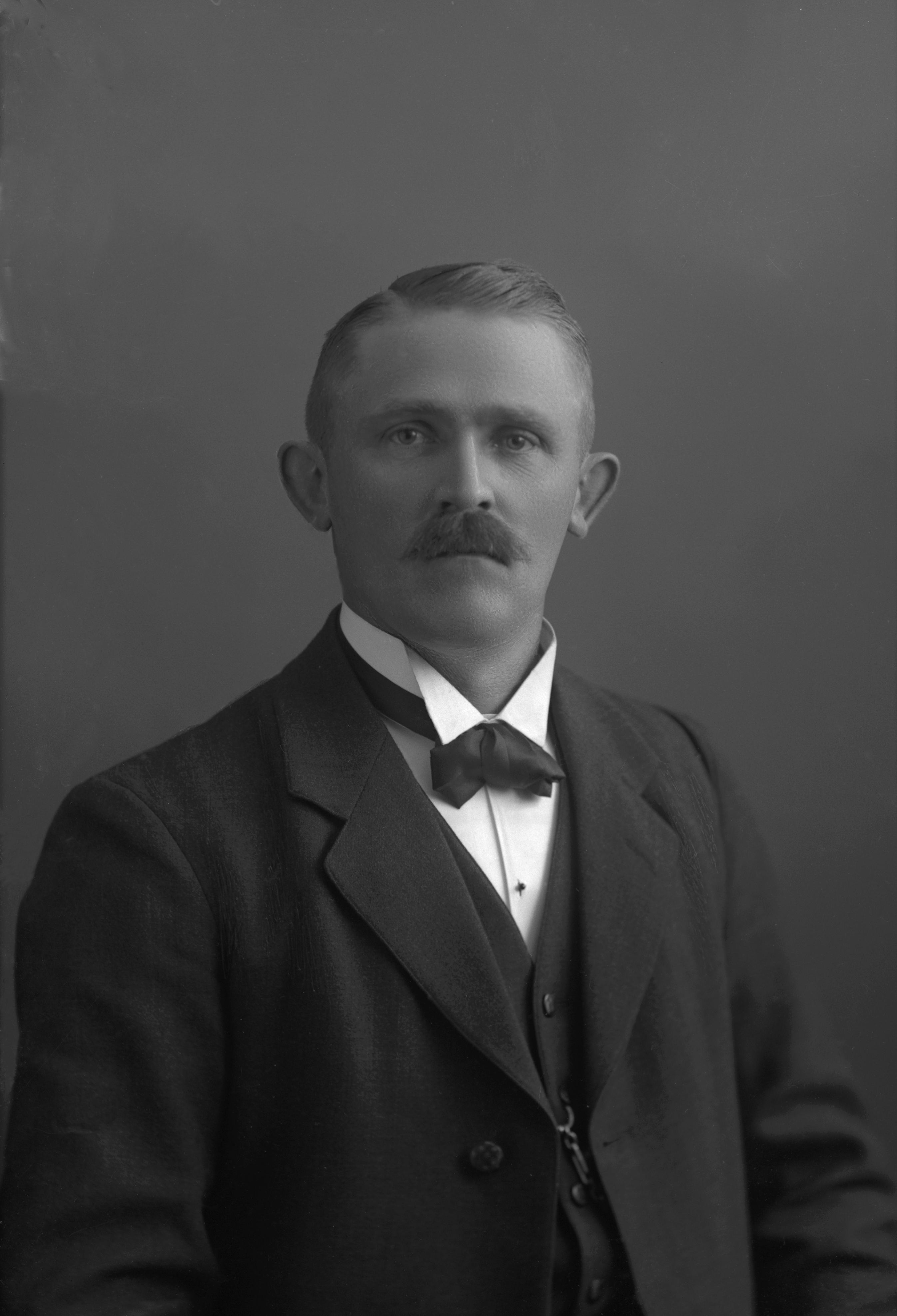 Porträtt i halvfigur av småbrukaren Johan Greisson Nilsson i Räng, son till husman Ola Greisson (1820-1902).