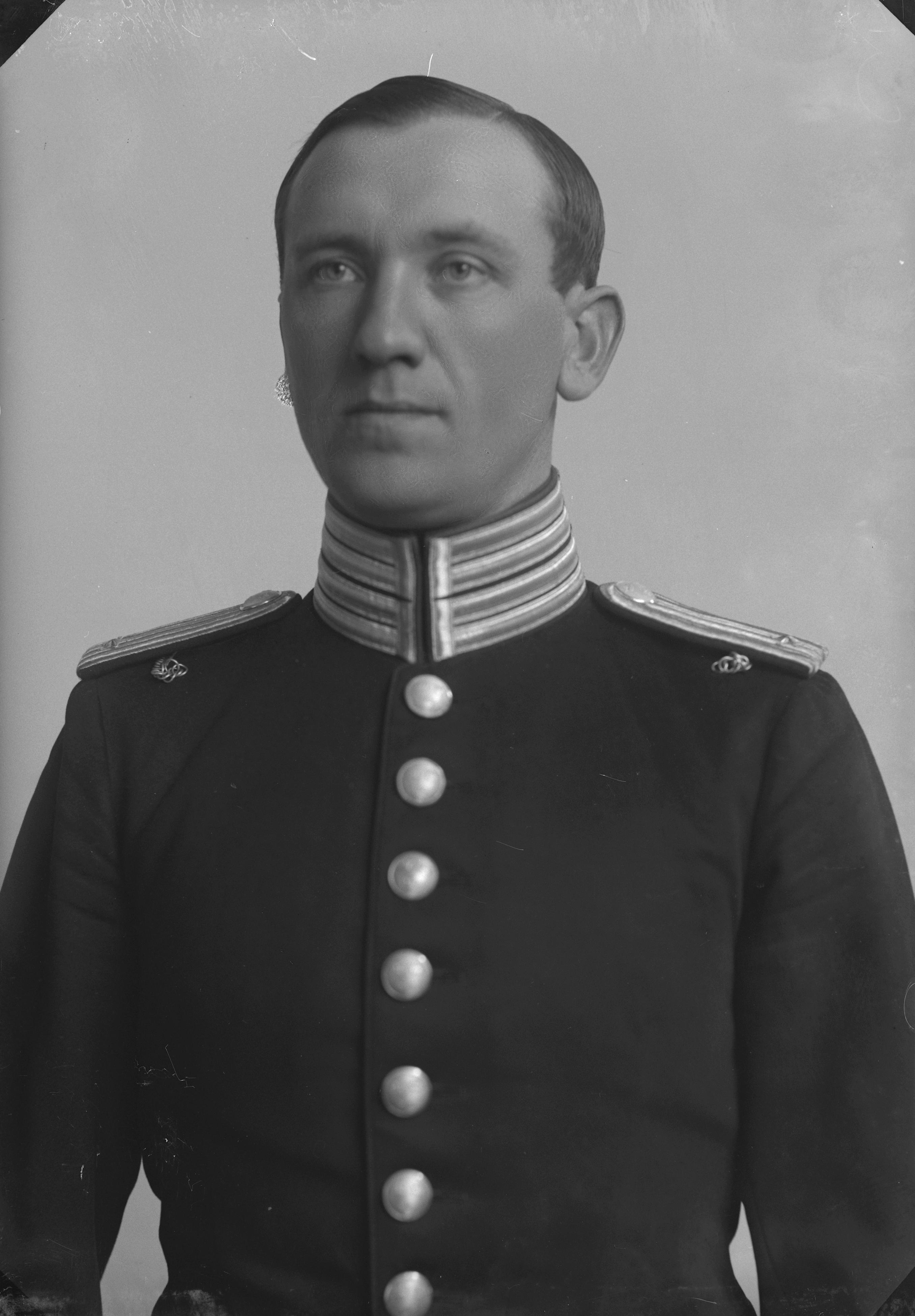 Porträtt i halvfigur av poliskommisarie Clementz, iklädd polisuniform.