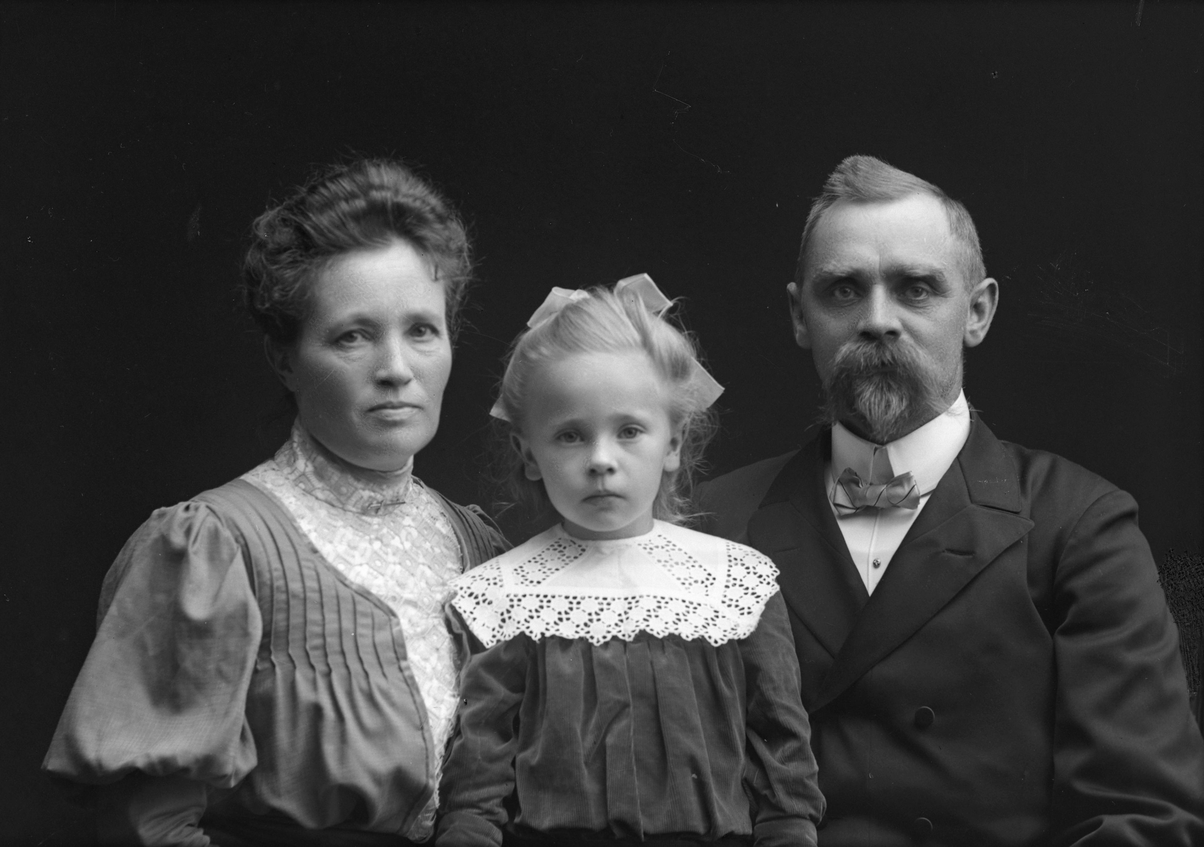 Porträtt i halvfigur av disponent O. M. Persson med familj.
