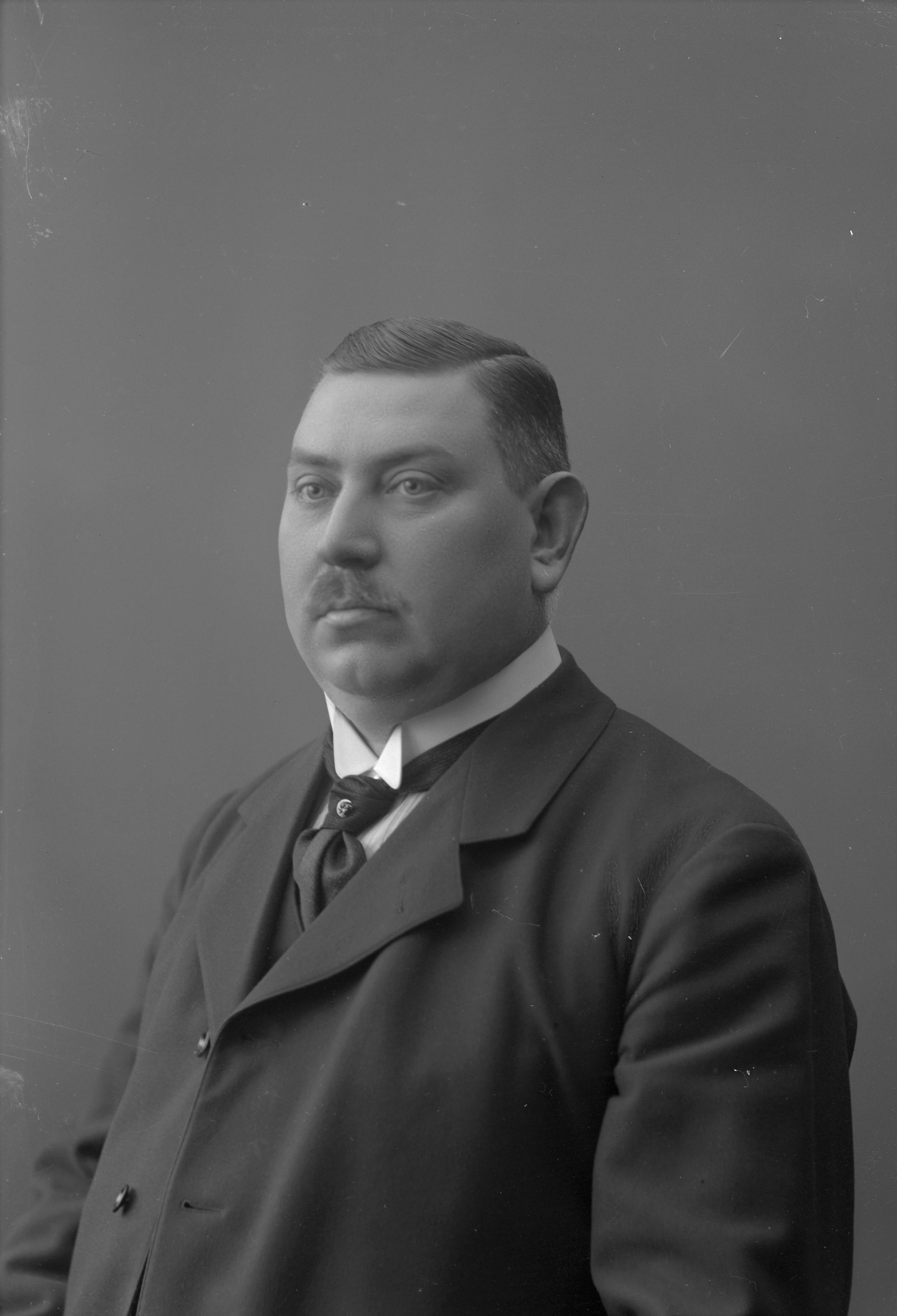 Porträtt i halvfigur av handelsmannen Sigfrid Nilsson i Kävlinge.