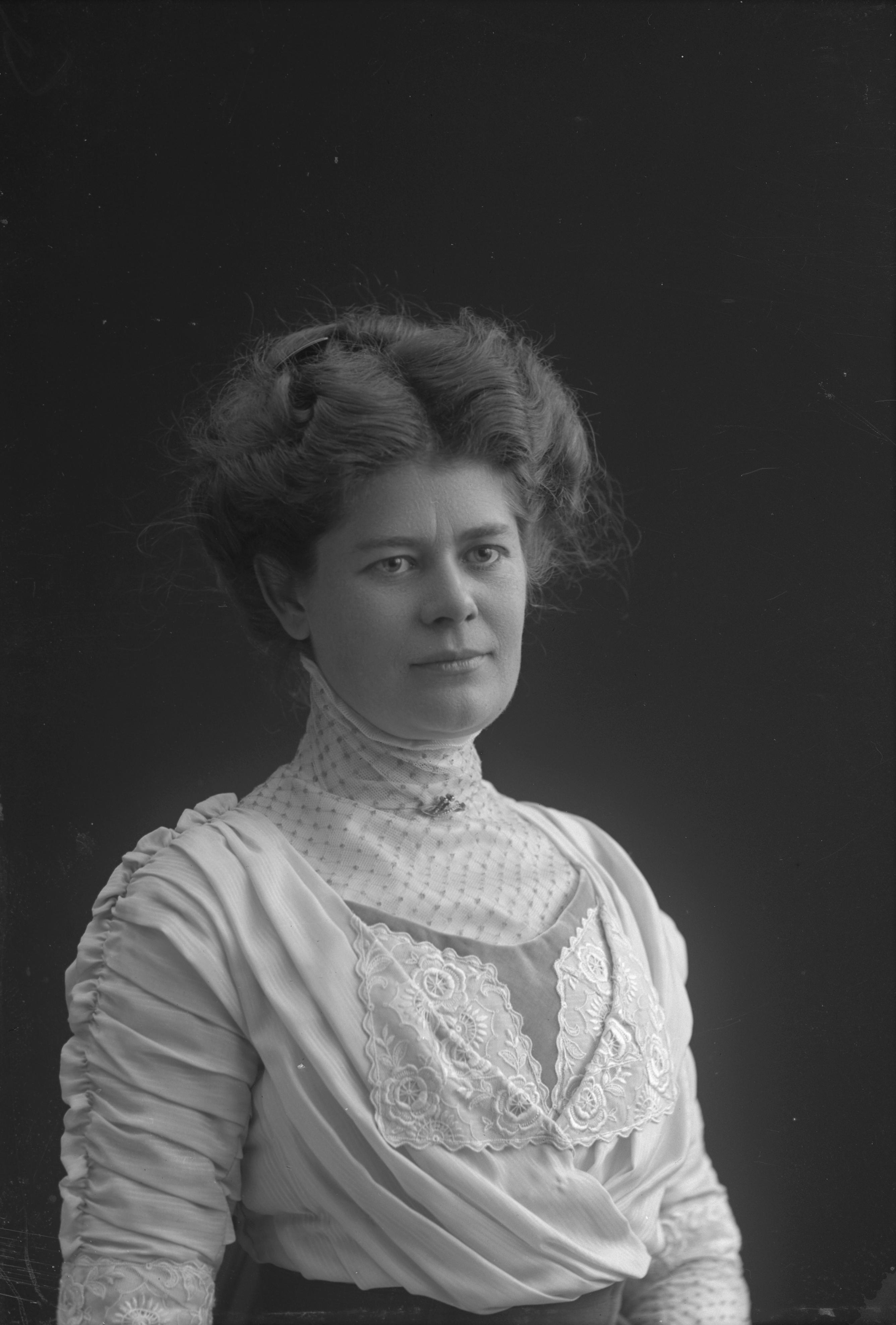 Porträtt i halvfigur av Elin Winberg, kassörska vid Telegrafverket. Dotter till förgyllare Anders Edmund Winberg (1851-1889) och Ingrid Augusta Larsson (1855-1918).