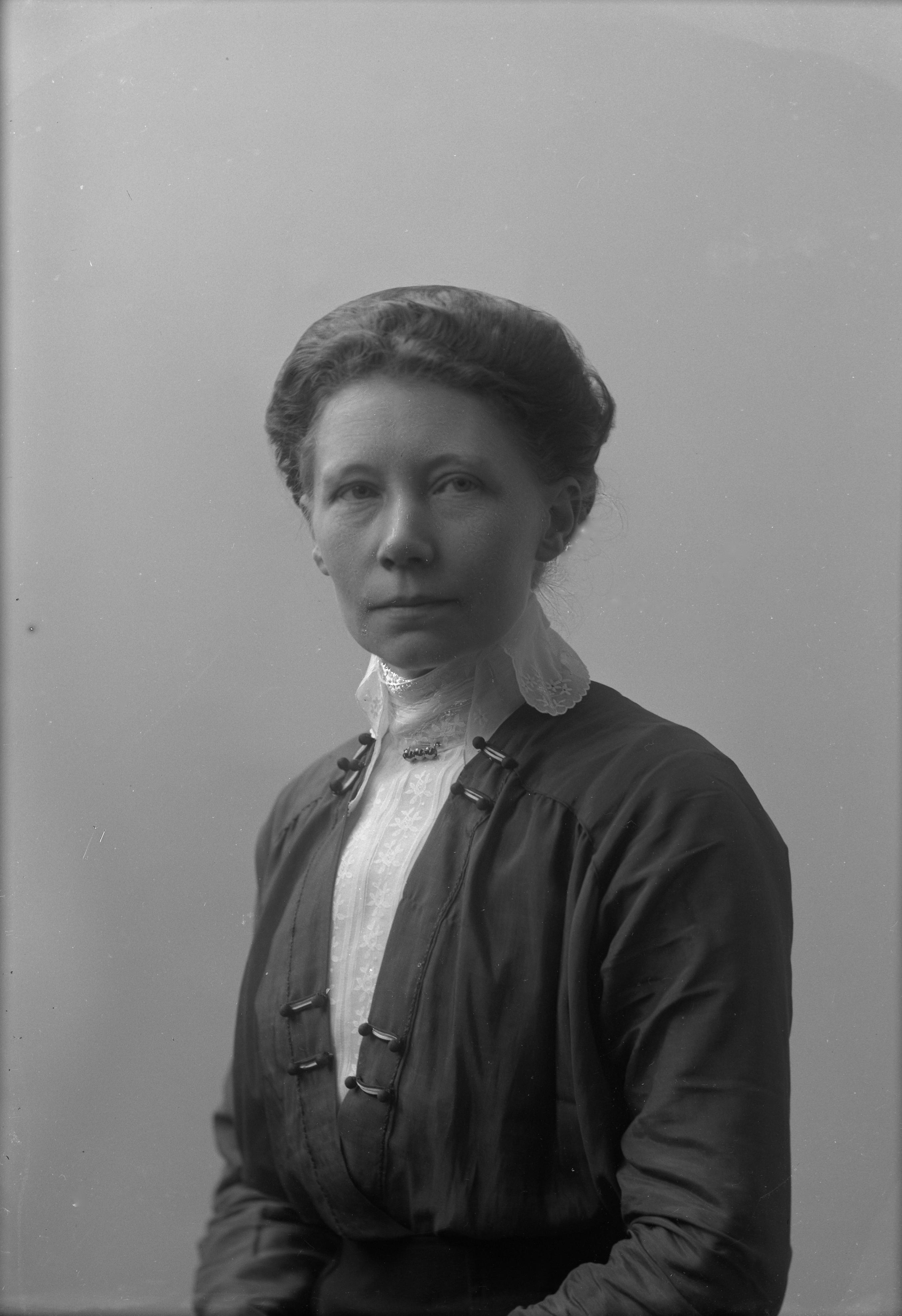 Porträtt i halvfigur av Emmy Olsson, postanställd.