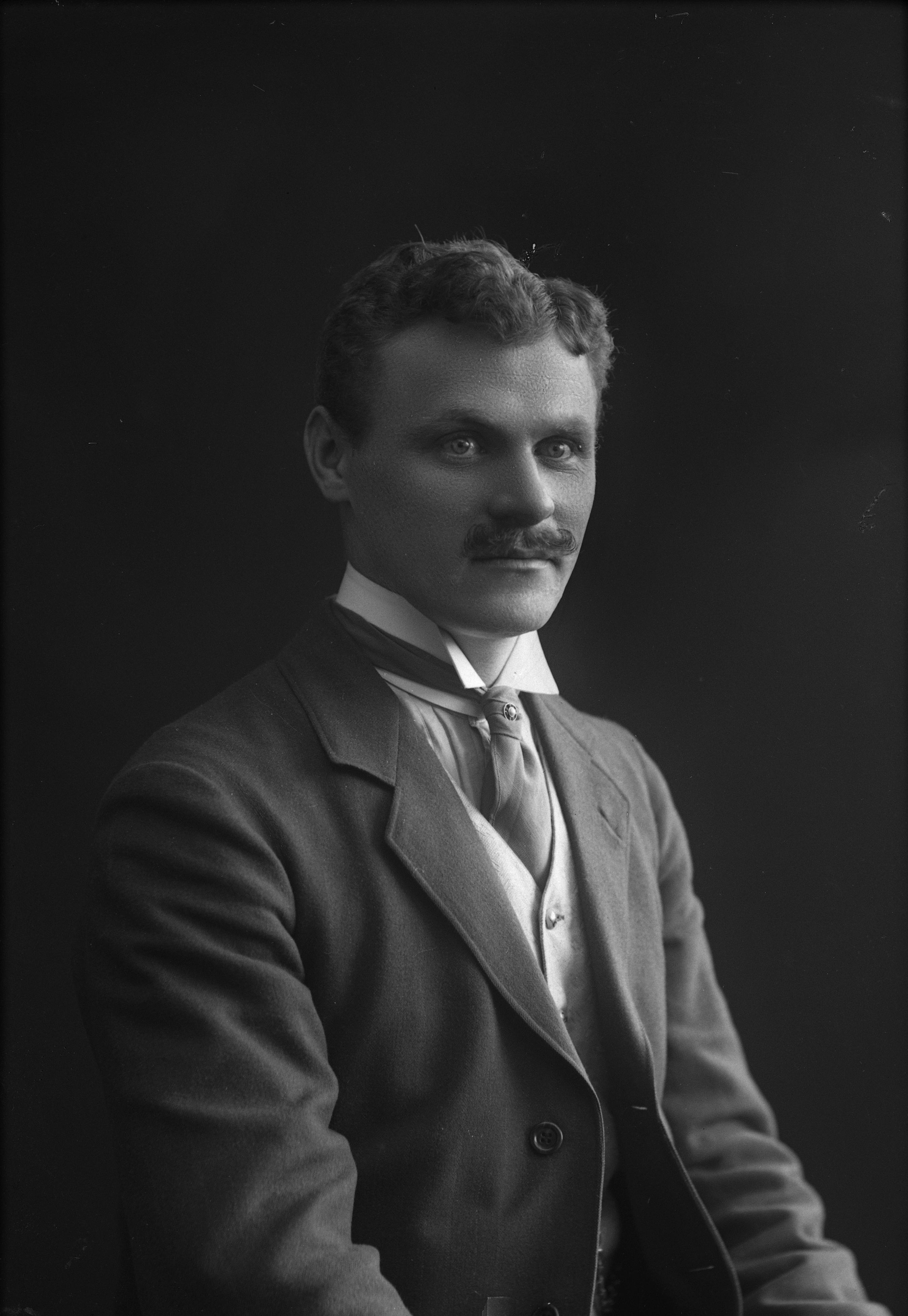 Porträtt i halvfigur av tapetserare Schlyter.