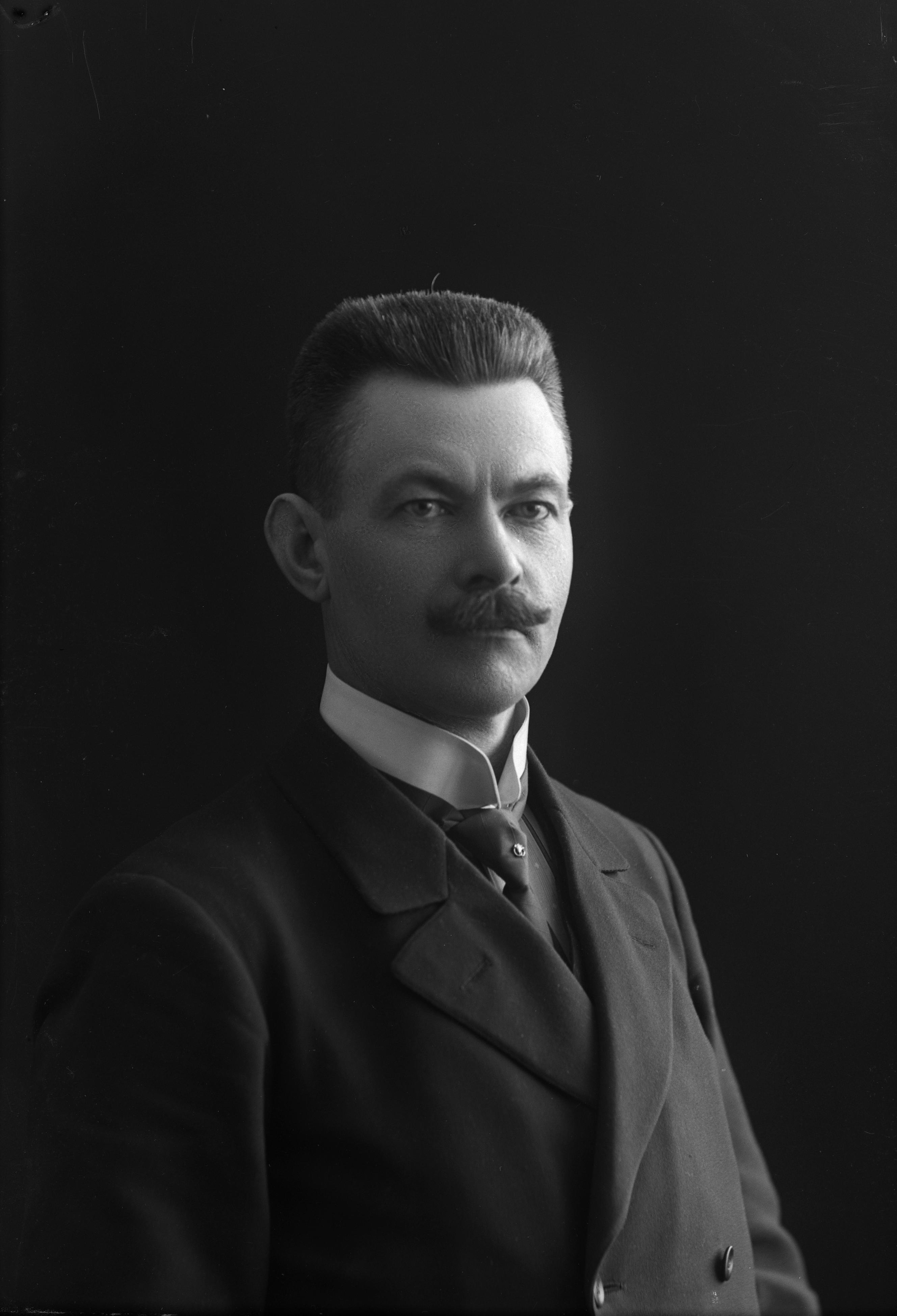 Porträtt i halvfigur av snickeriinspektor Ivar Malmstöm.