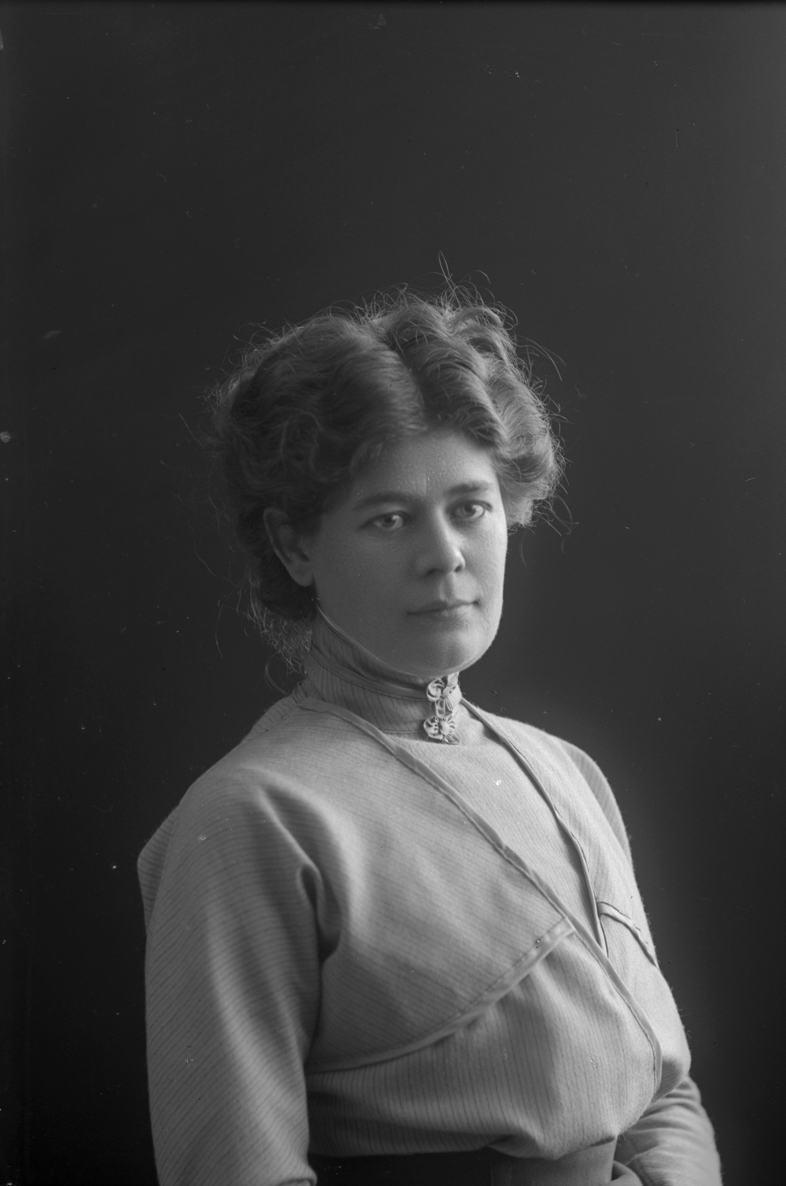 Porträtt i halvfigur av Elin Winberg, kassörska vid Telegrafverket.
