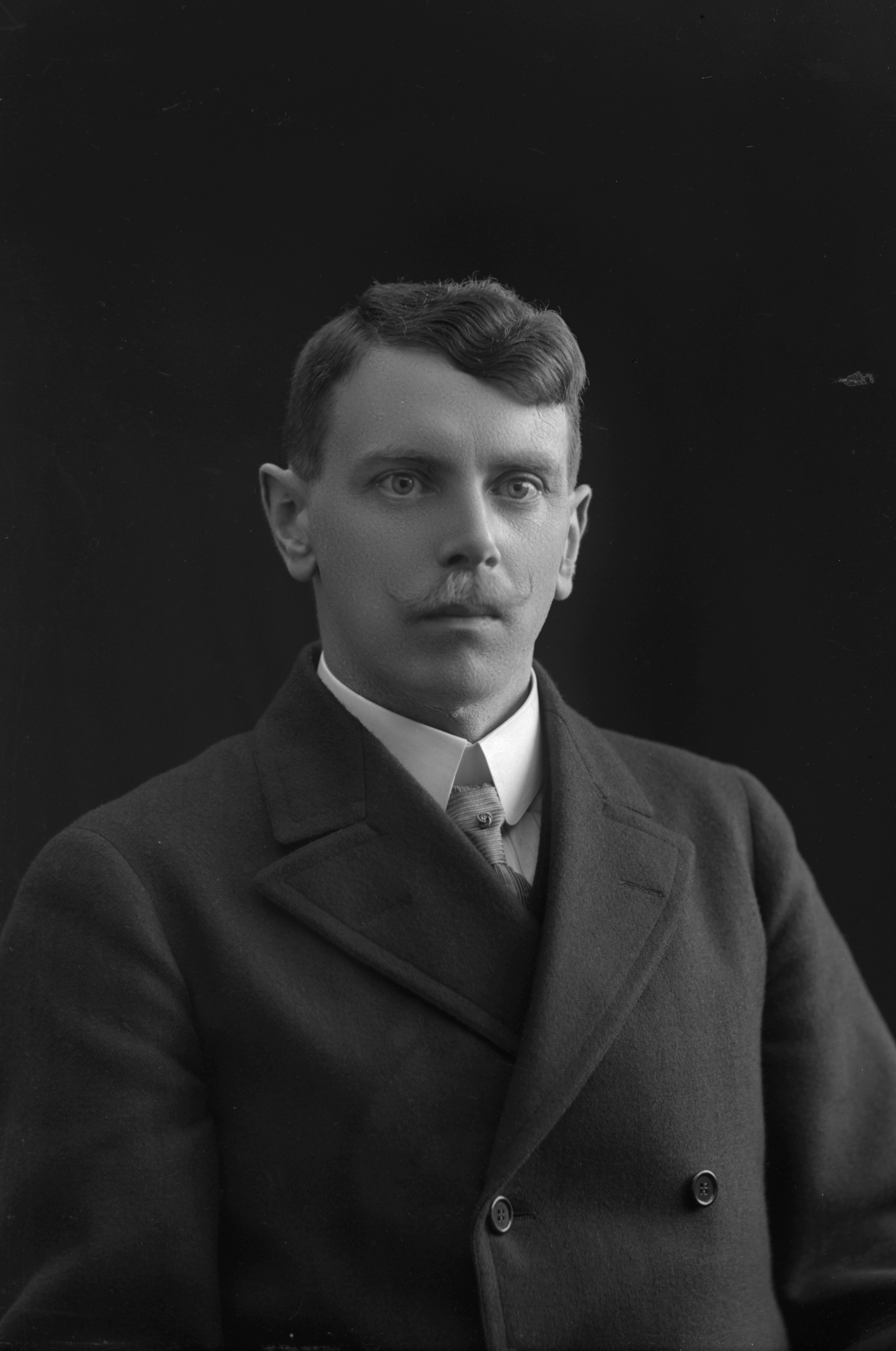Porträtt i halvfigur av ingenjör Josef Alf Sjöström.