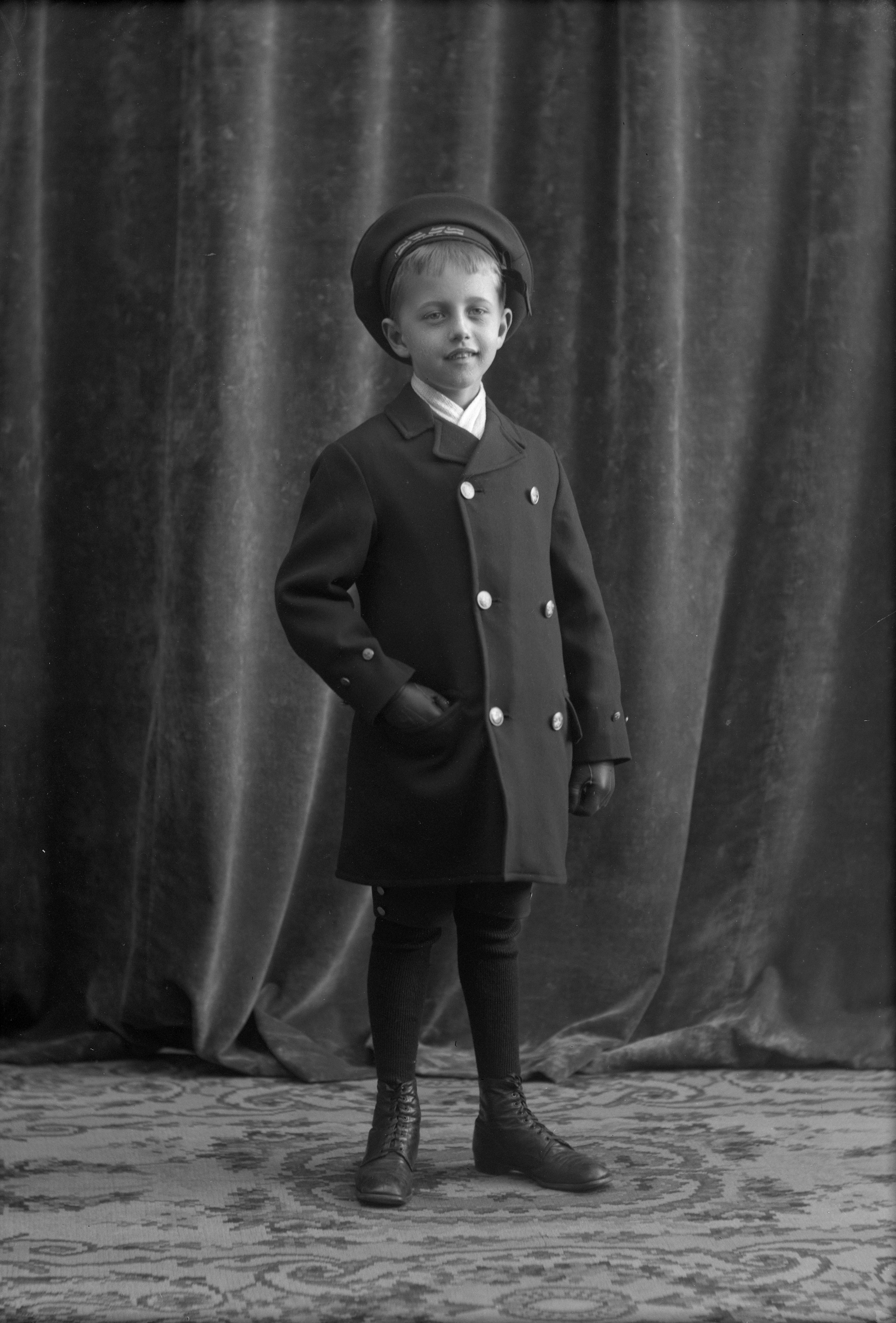 sjömanskostym [?]; ytterkläder; logotyp [?]; draperi