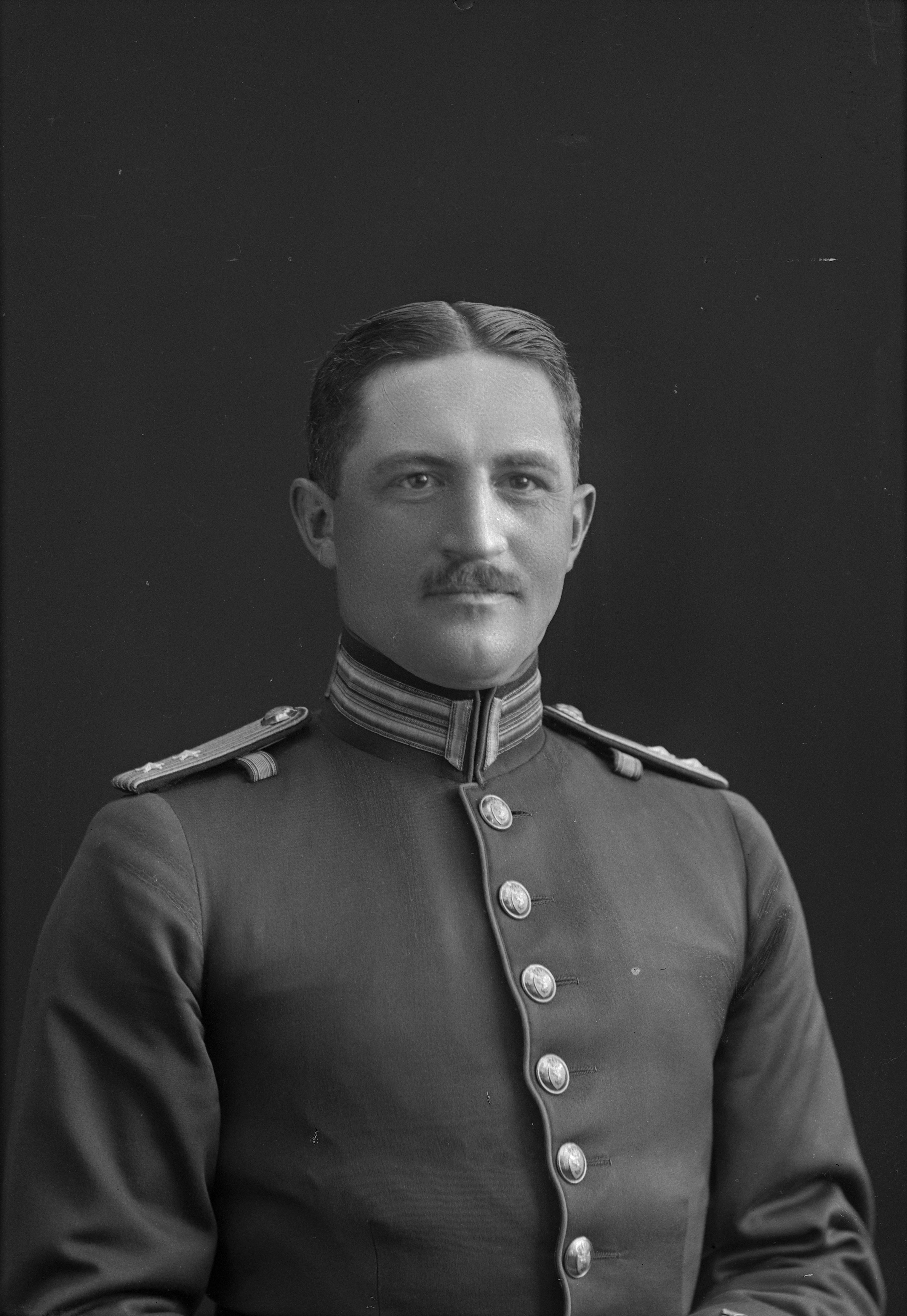 Porträtt i halvfigur av löjtnant Emil Rudolf Aschan, iklädd militäruniform.