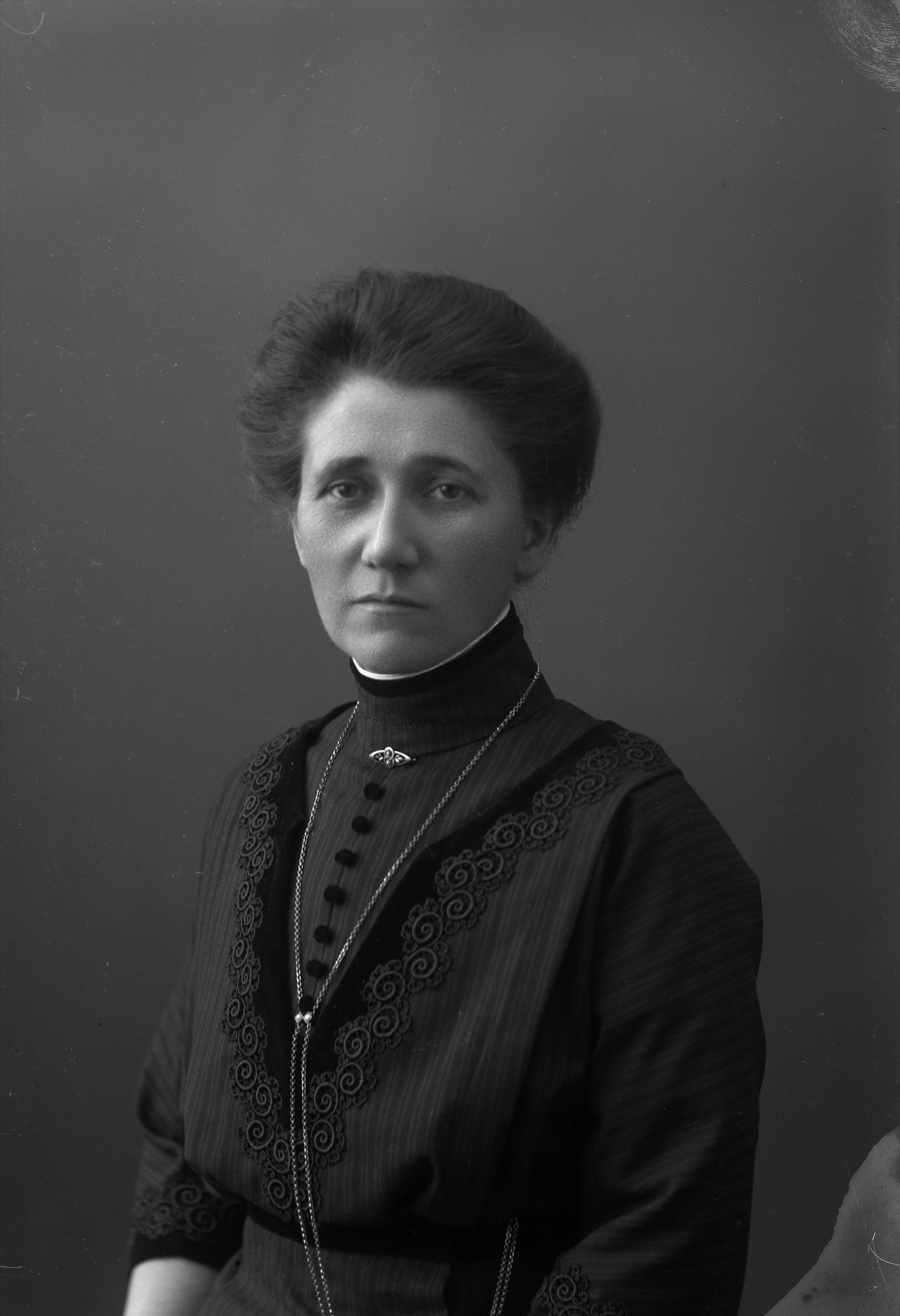 Porträtt i halvfigur av herr Petterssons fästmö.