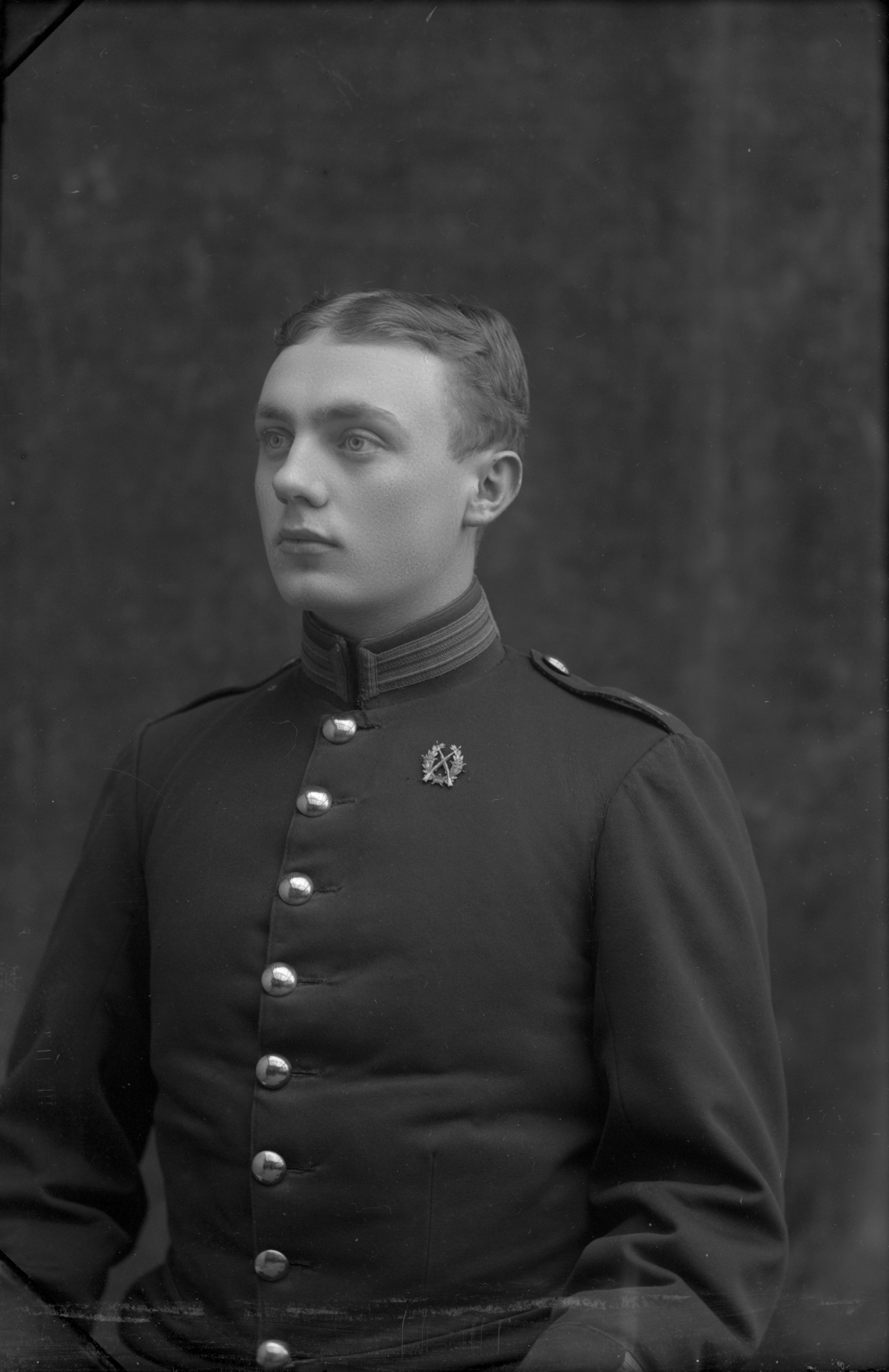 Porträtt i halvfigur av volontärkorpral Karl Wadensten, iklädd militäruniform.