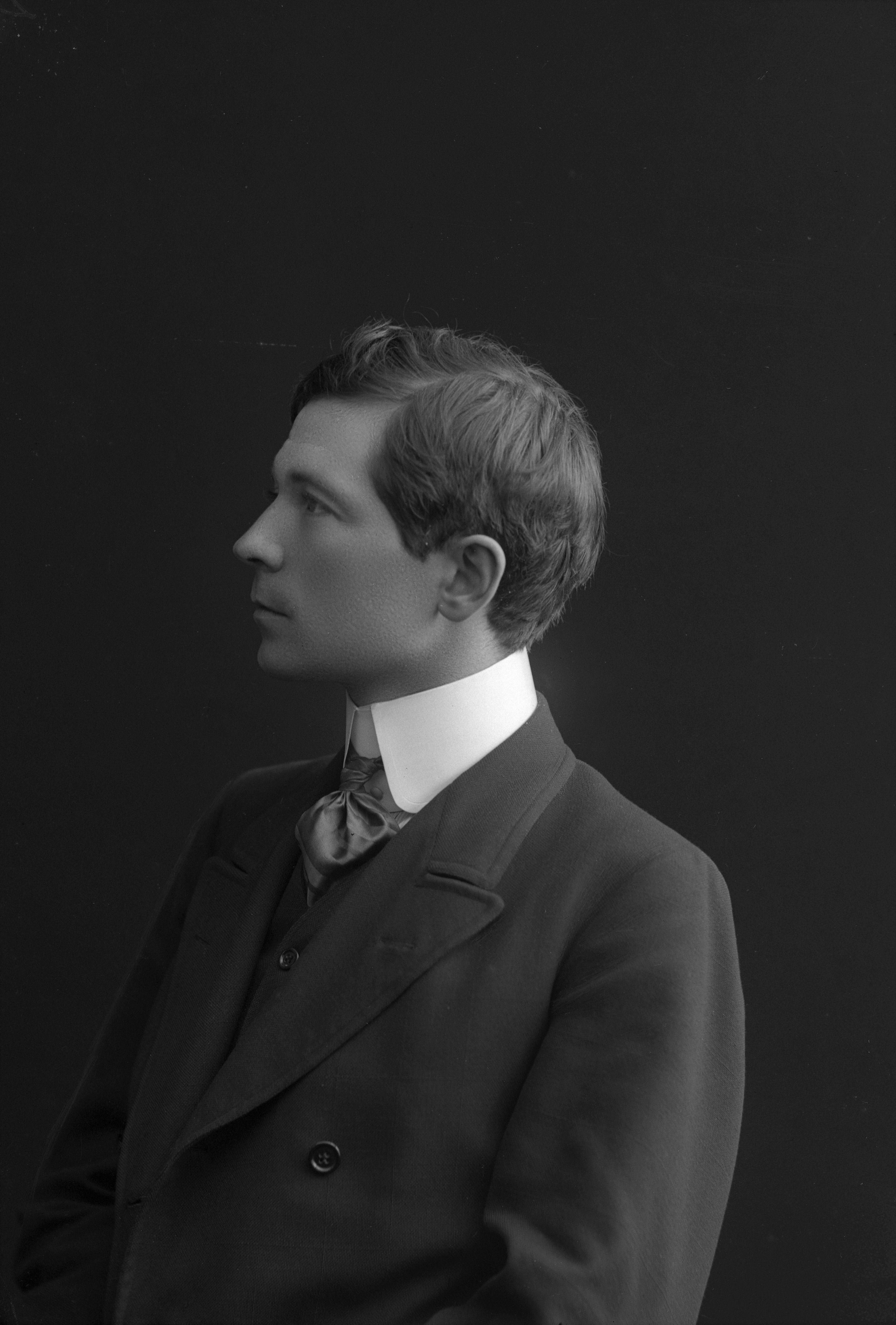 Porträtt i halvfigur, profil, av läkarstudent Lars Birger Rossborg-Nilsson i Anderslöv.