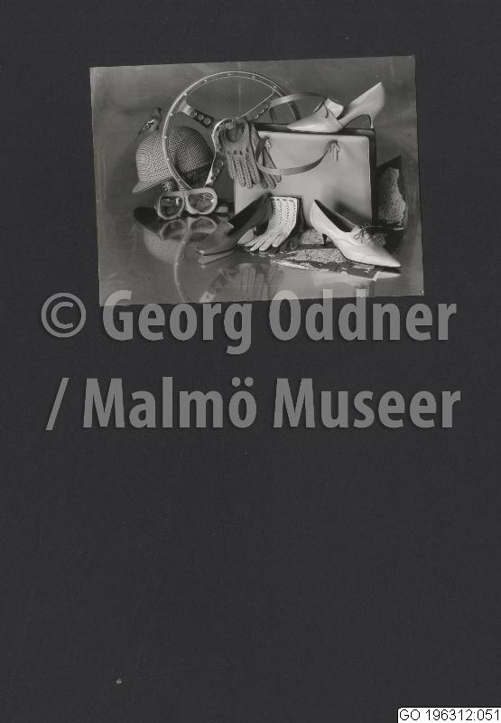Handväska, handskar, skodon, solglasögon. Dubblet.