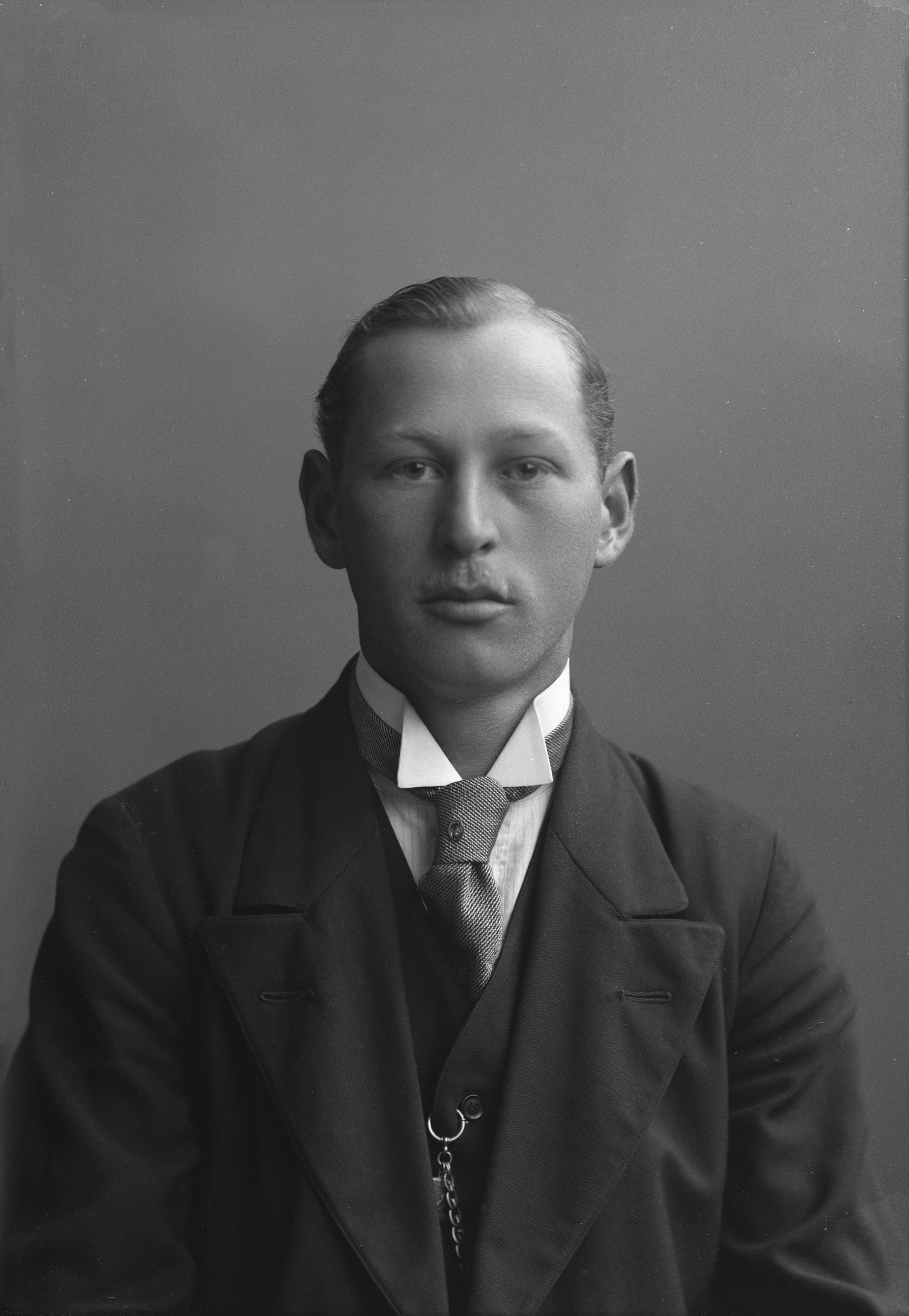 Porträtt i halvfigur av godskontorist Albert Svensson.
