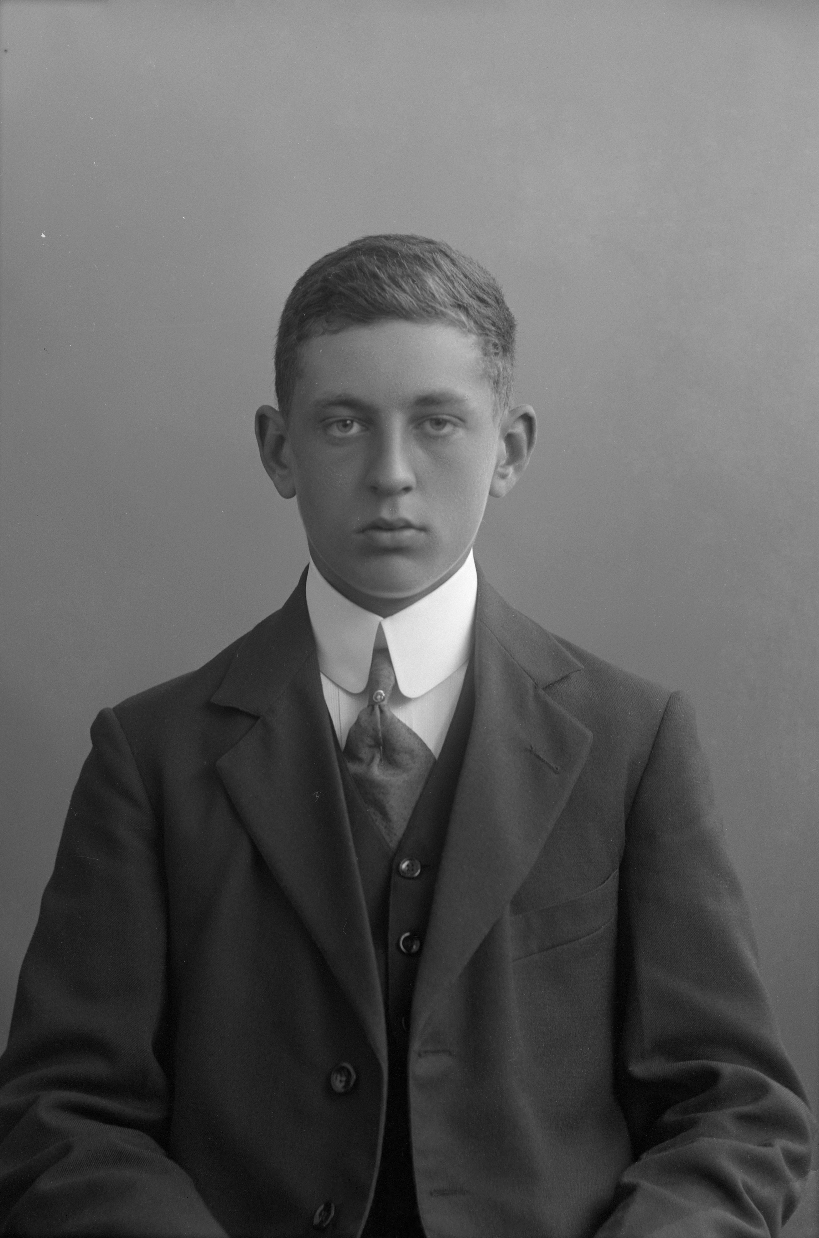 Porträtt i halvfigur av konfirmanden Jan Sonnesson.