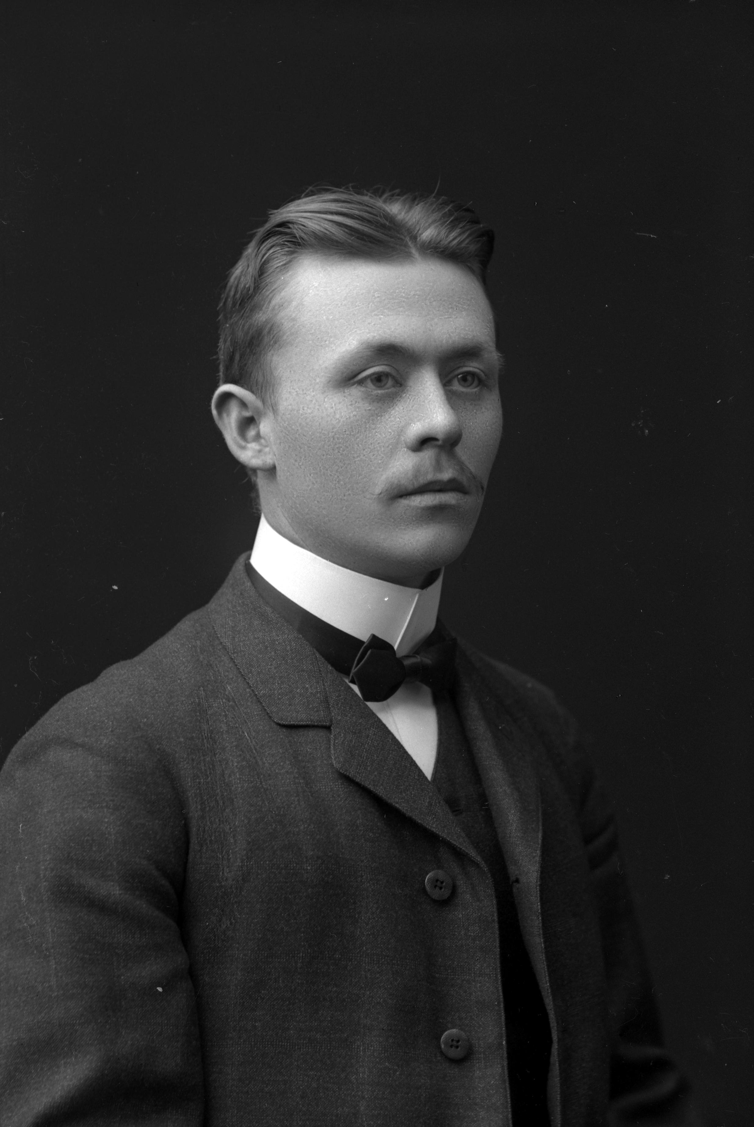 Porträtt i halvfigur av Gustav Abrahamsson på Hvilan.