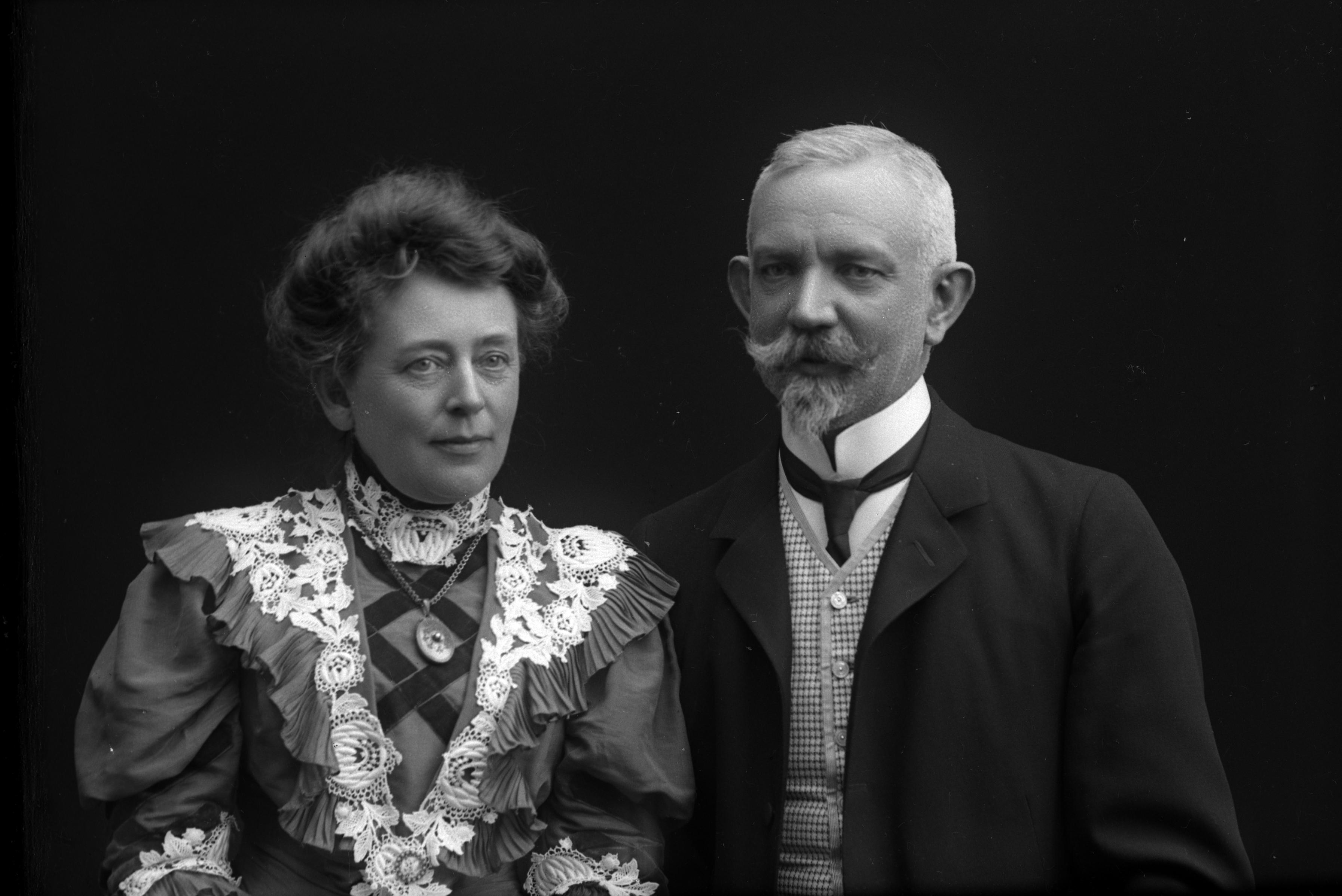 Porträtt i halvfigur av häradshövding Christian Hommerberg med frun Ninni.