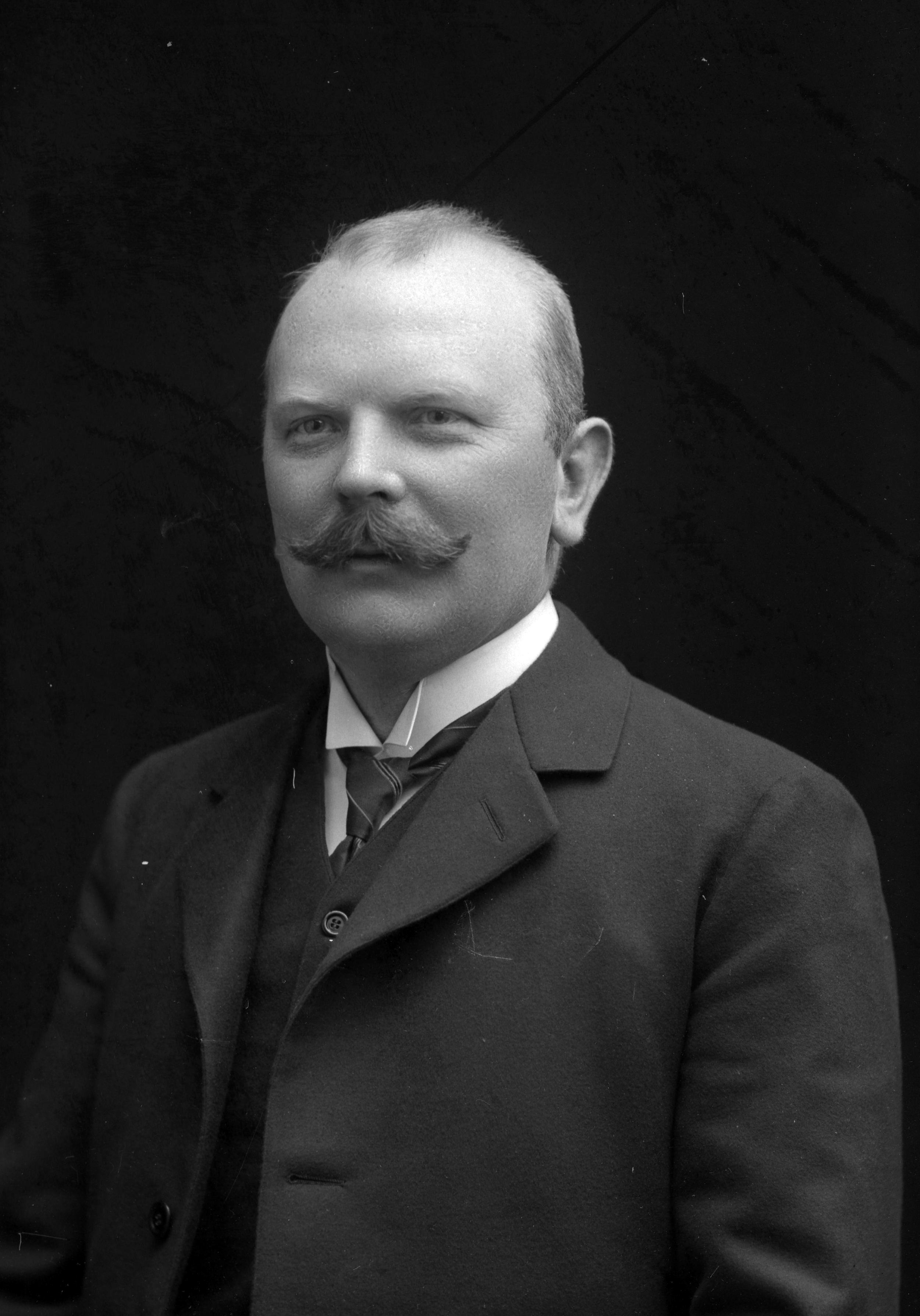 Porträtt i halvfigur av handelslärare Johan Edvard Malmroth.