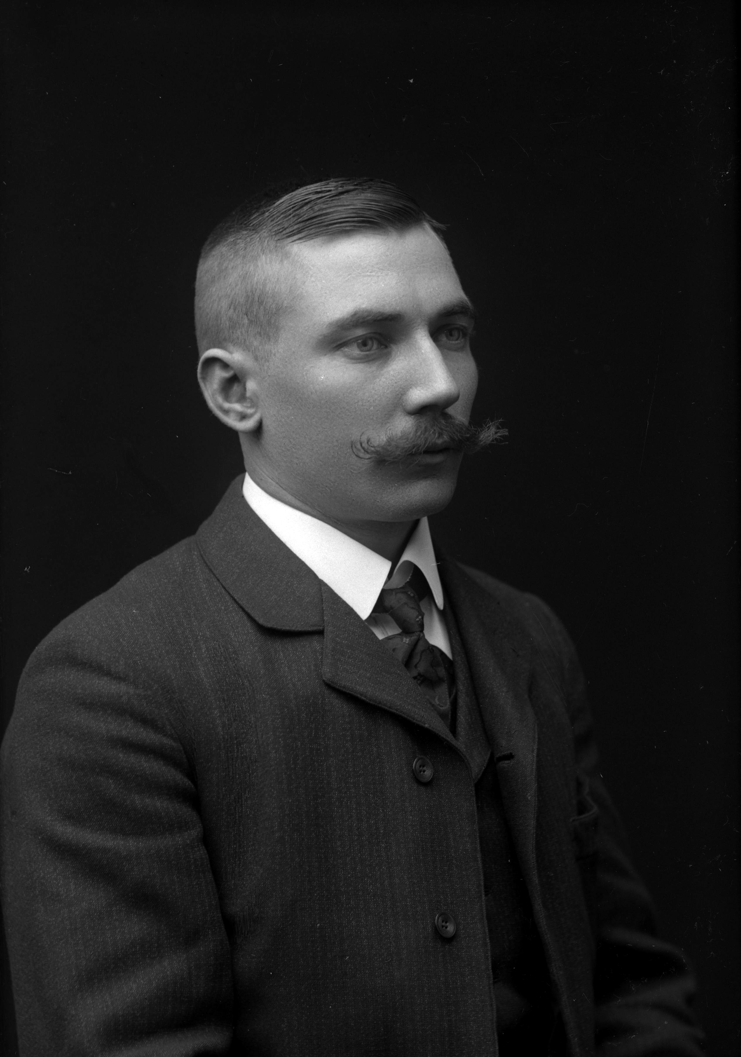 Porträtt i halvfigur av fartygsmaskinist Lindahl.