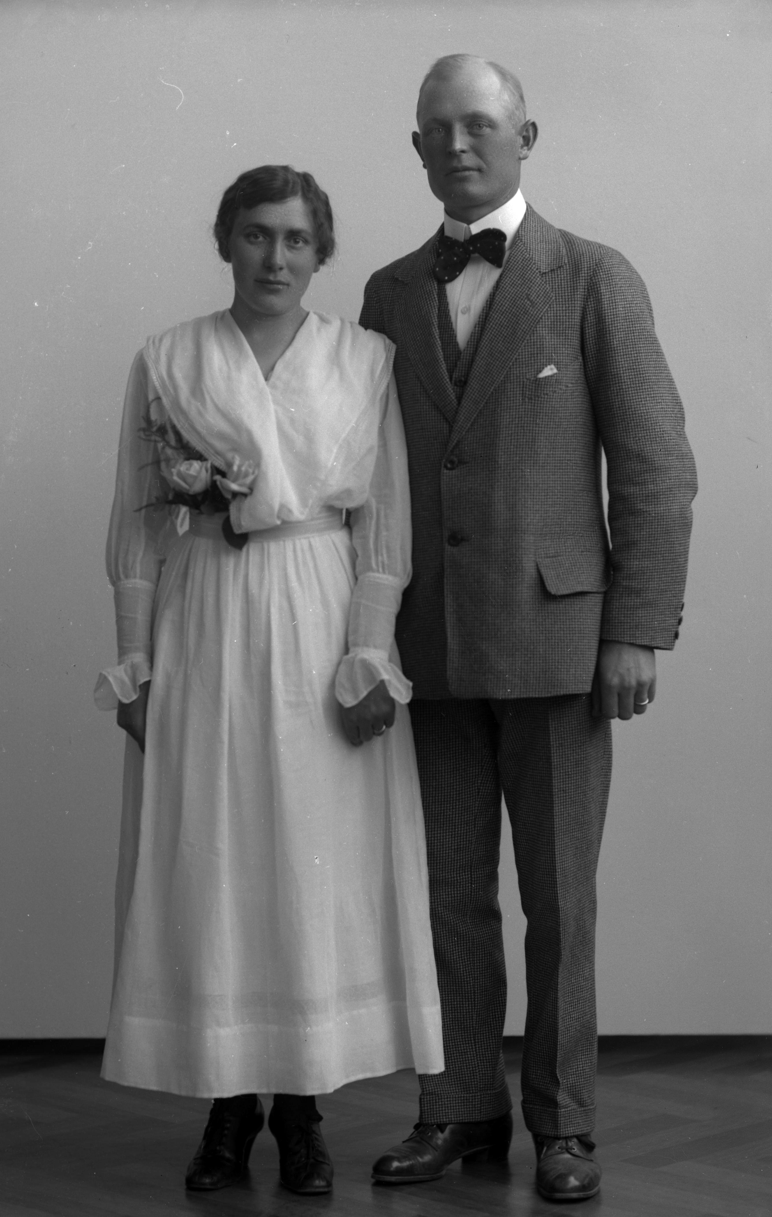 Porträtt i helfigur av sergeant Reinholt med fru.