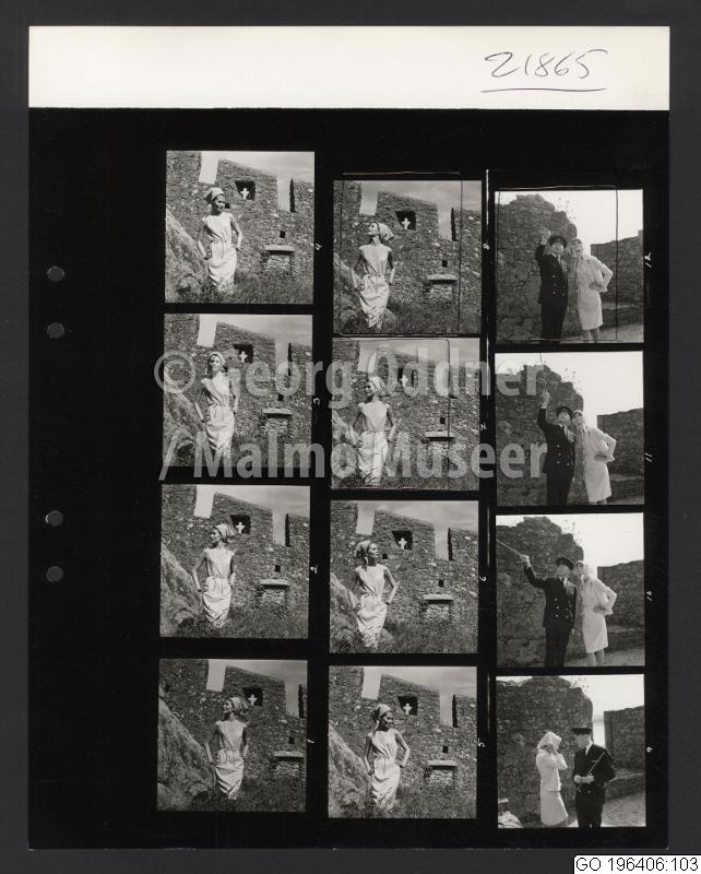 GO 196406:103 :: klädesprodukt, klänning, reklam, ö, slottsbebyggelse, man