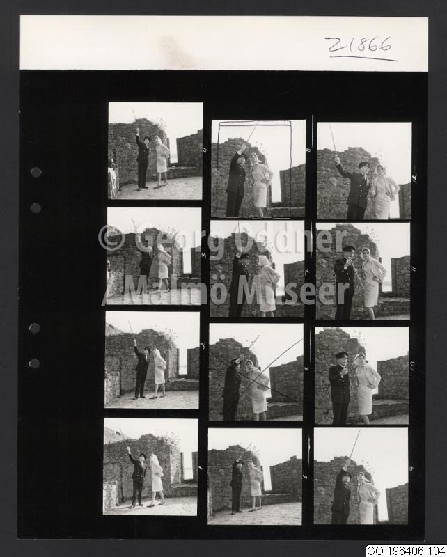 GO 196406:104 :: klädesprodukt, klänning, reklam, ö, slottsbebyggelse, man