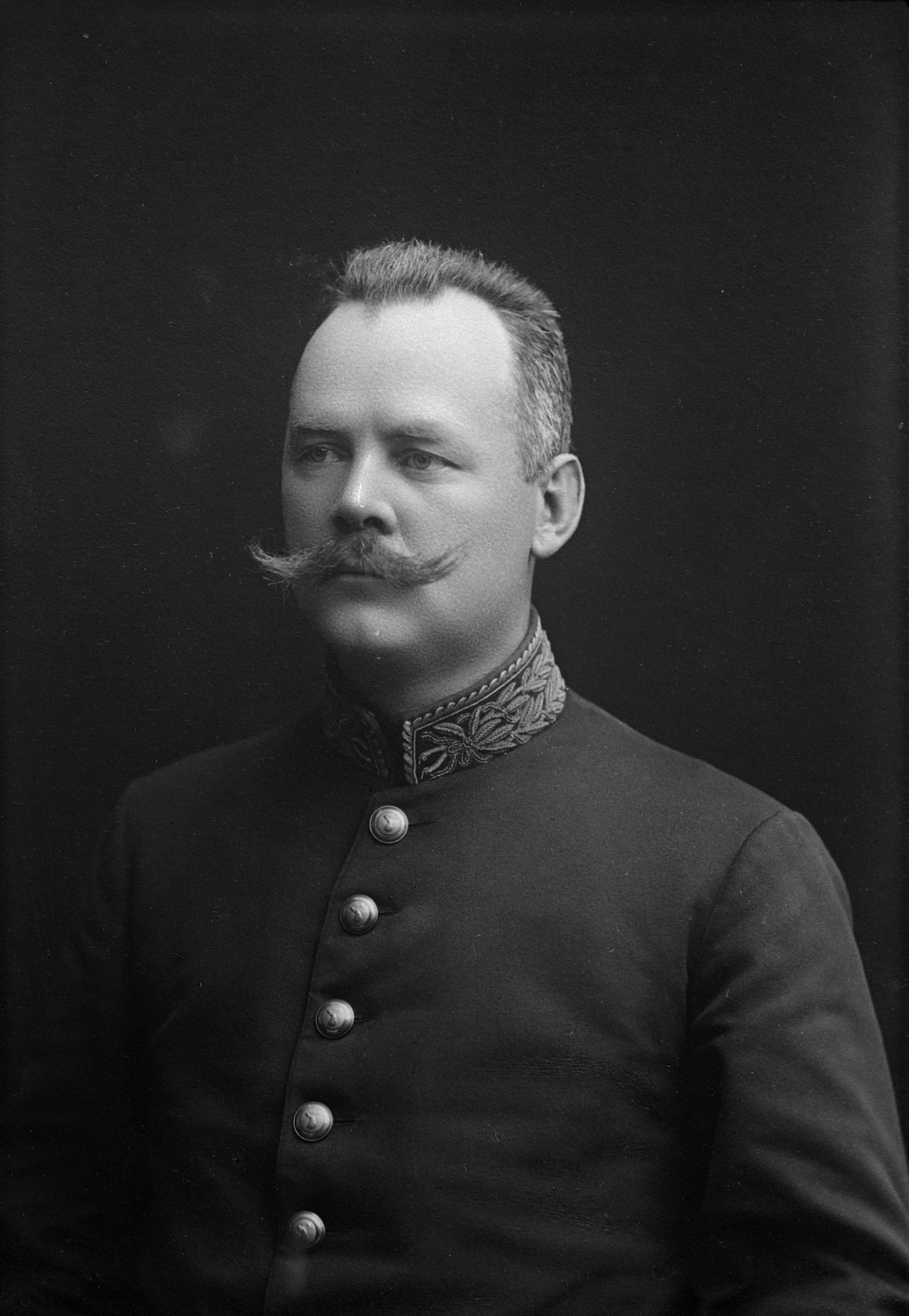 Porträtt i halvfigur av direktör Björk, iklädd militäruniform.
