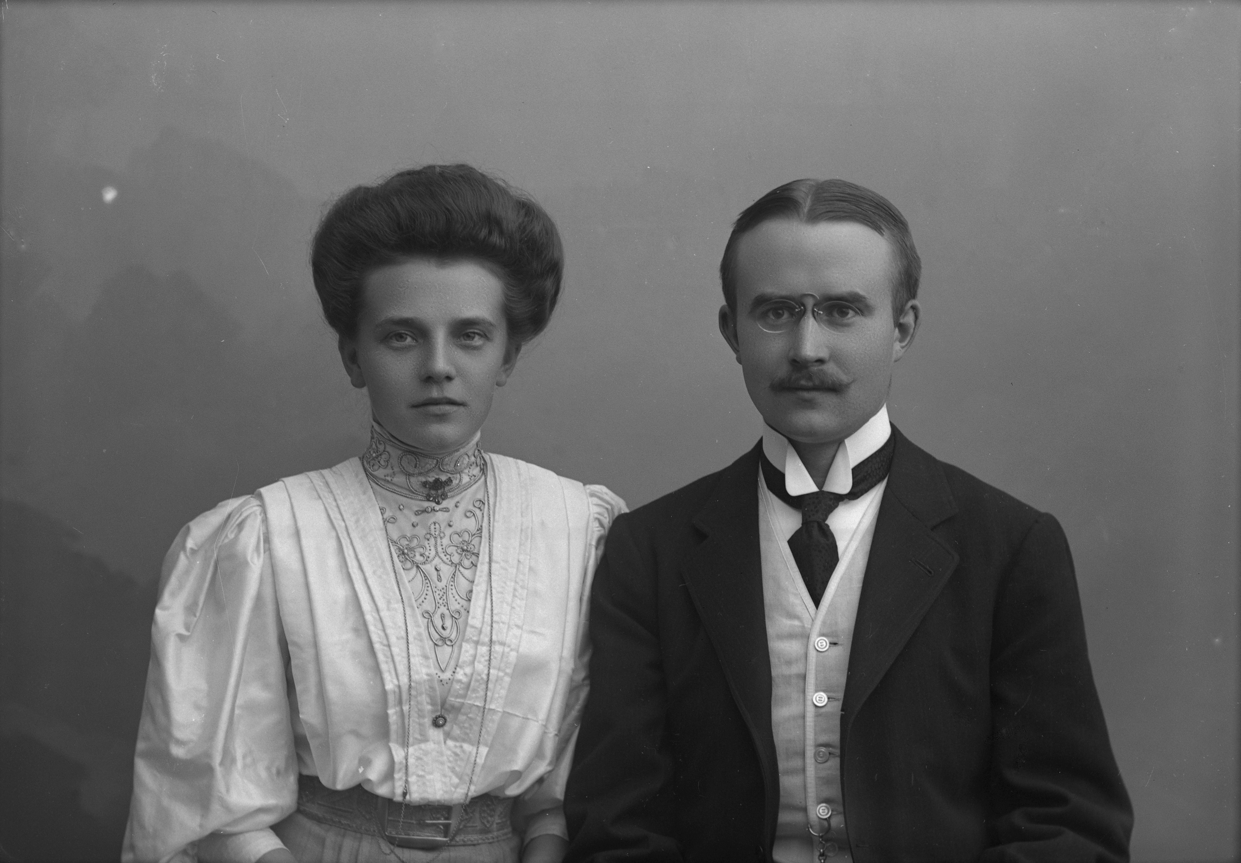 Porträtt i halvfigur av ingenjör Malmros med fru.