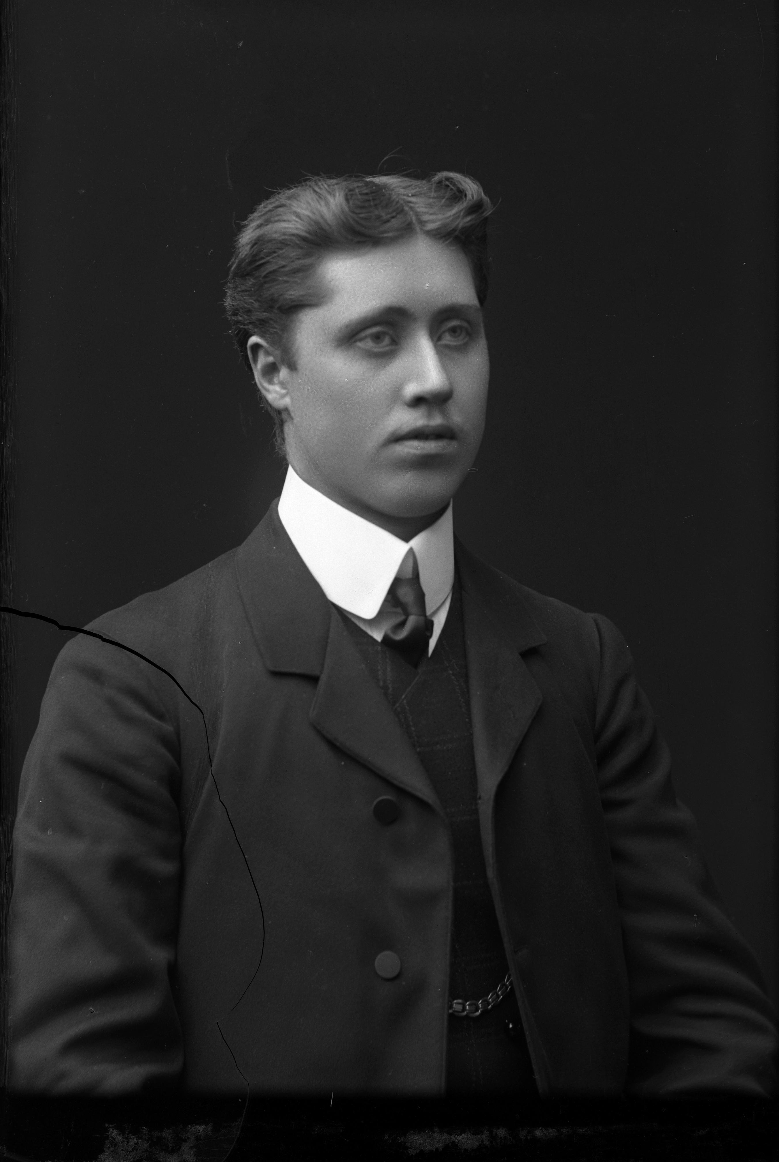 Porträtt i halvfigur av Ivald Eriksson, student på Hvilan.