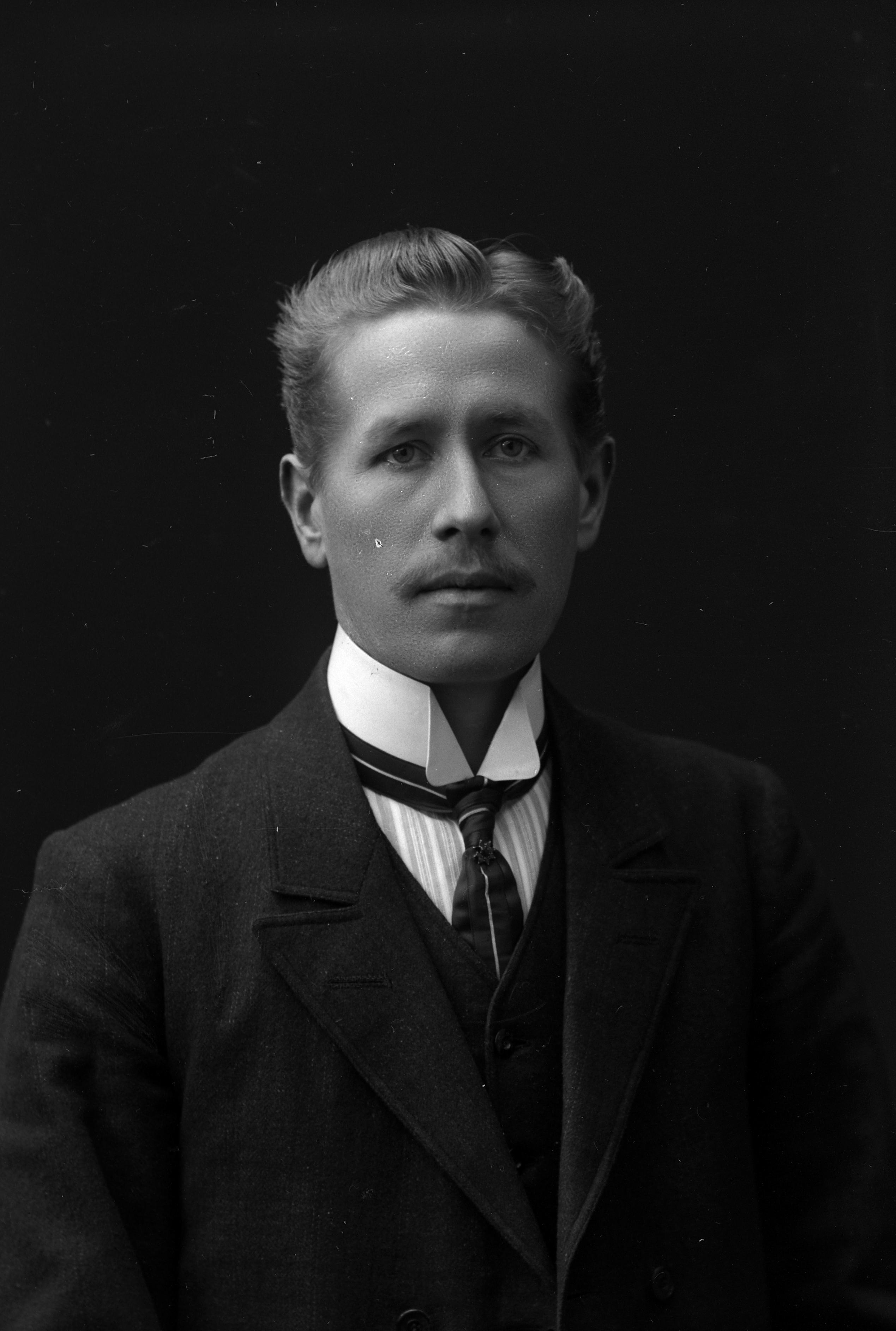 Porträtt i halvfigur av värmeledningseldare August Grönqvist.