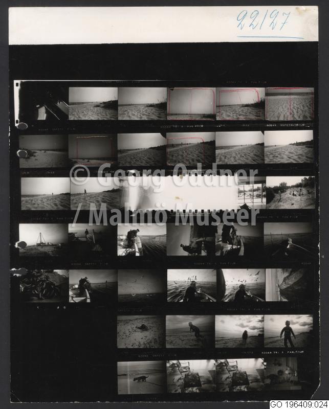 GO 196409:024 :: fiske, fiskeredskap, båt, man, strand