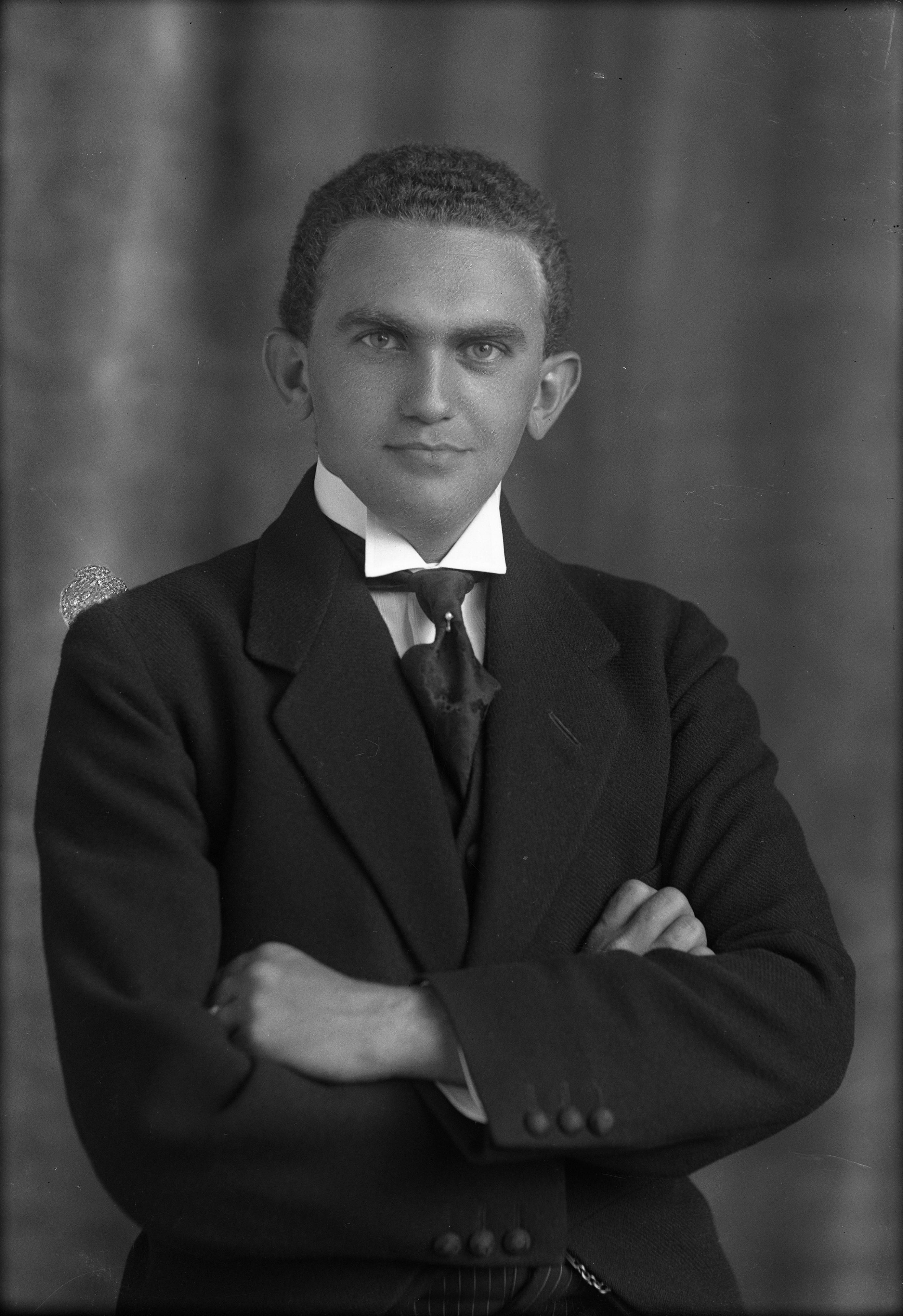 Porträtt i halvfigur av juridikstuderande herr Hedvall.