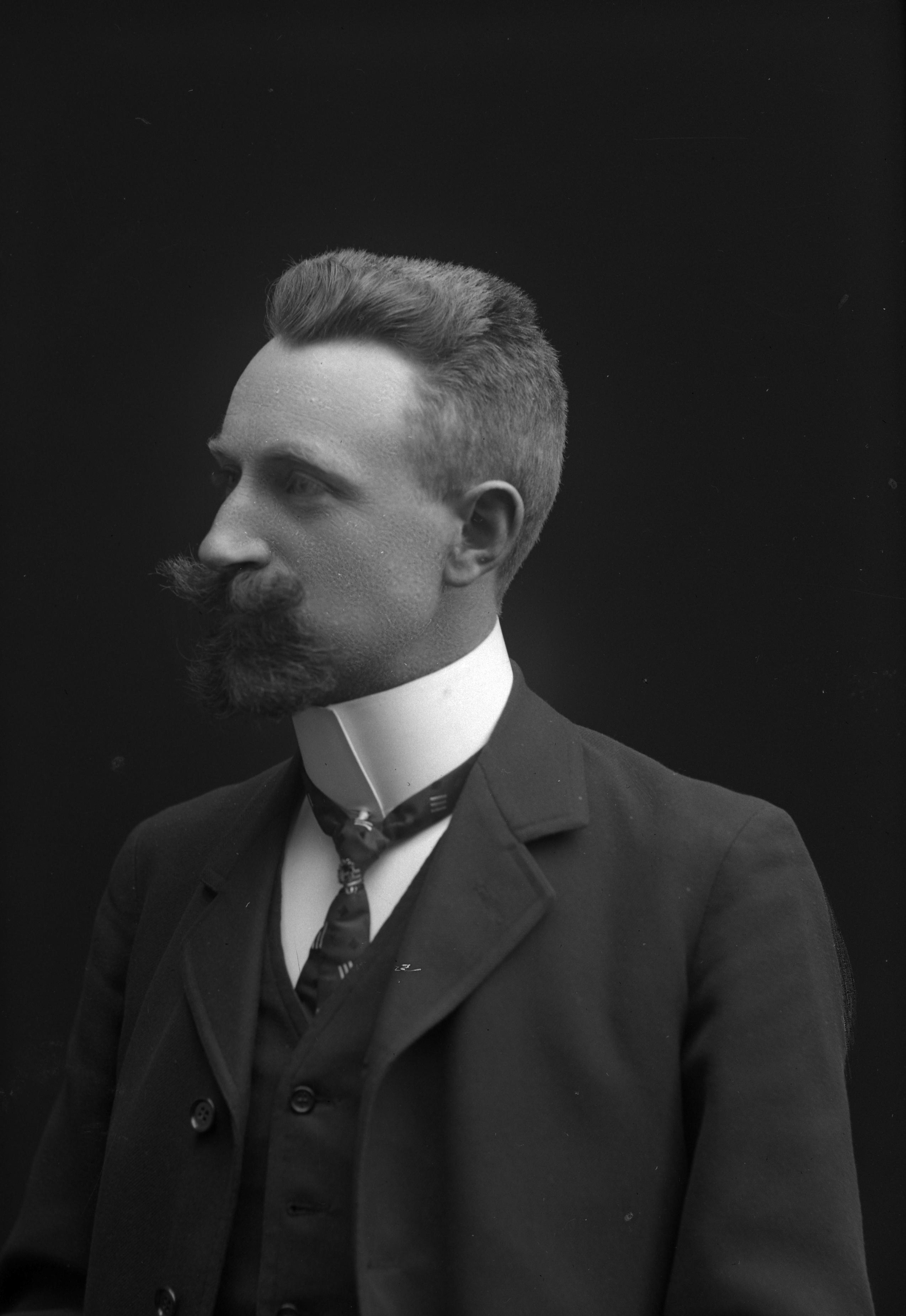 - Porträtt i halvfigur av sågeriarbetare, sedermera godsägare Karl Sundevall, aniskte i profil.