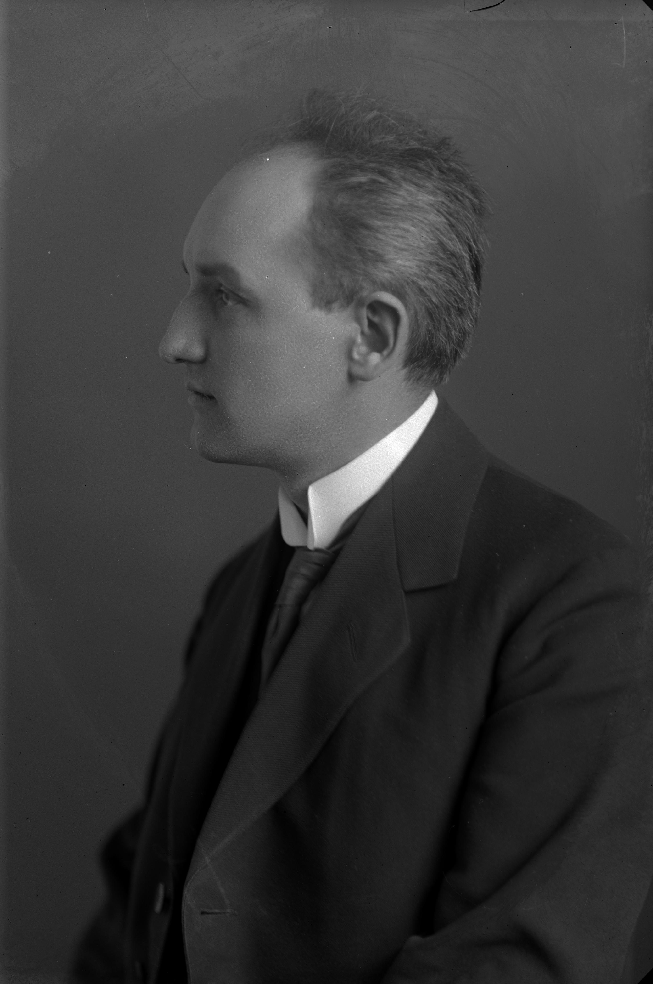 Porträtt i halvfigur, profil, av Ingemar Winning.