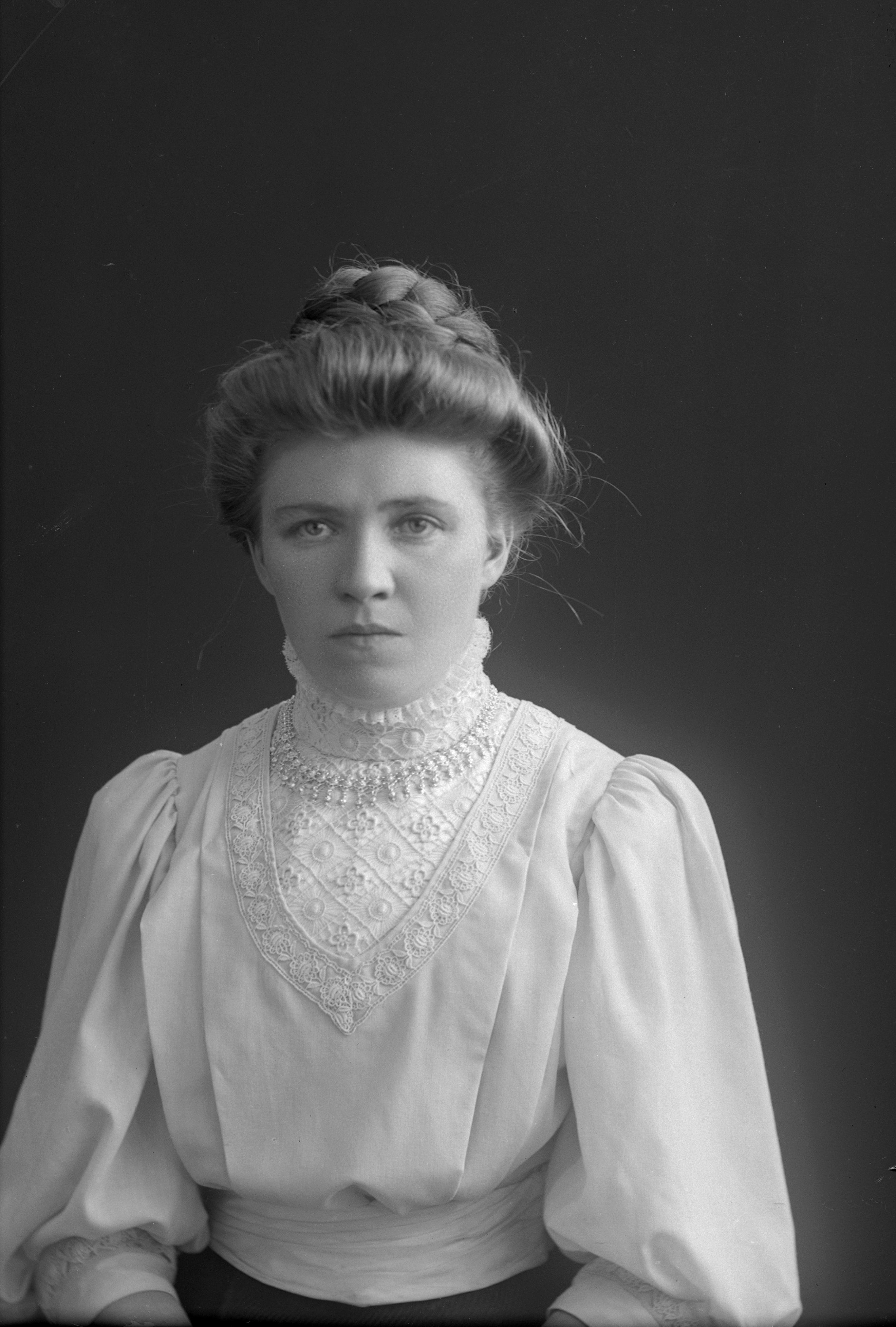 Porträtt i halvfigur av Lovisa Andersson med inbakad hårfläta.