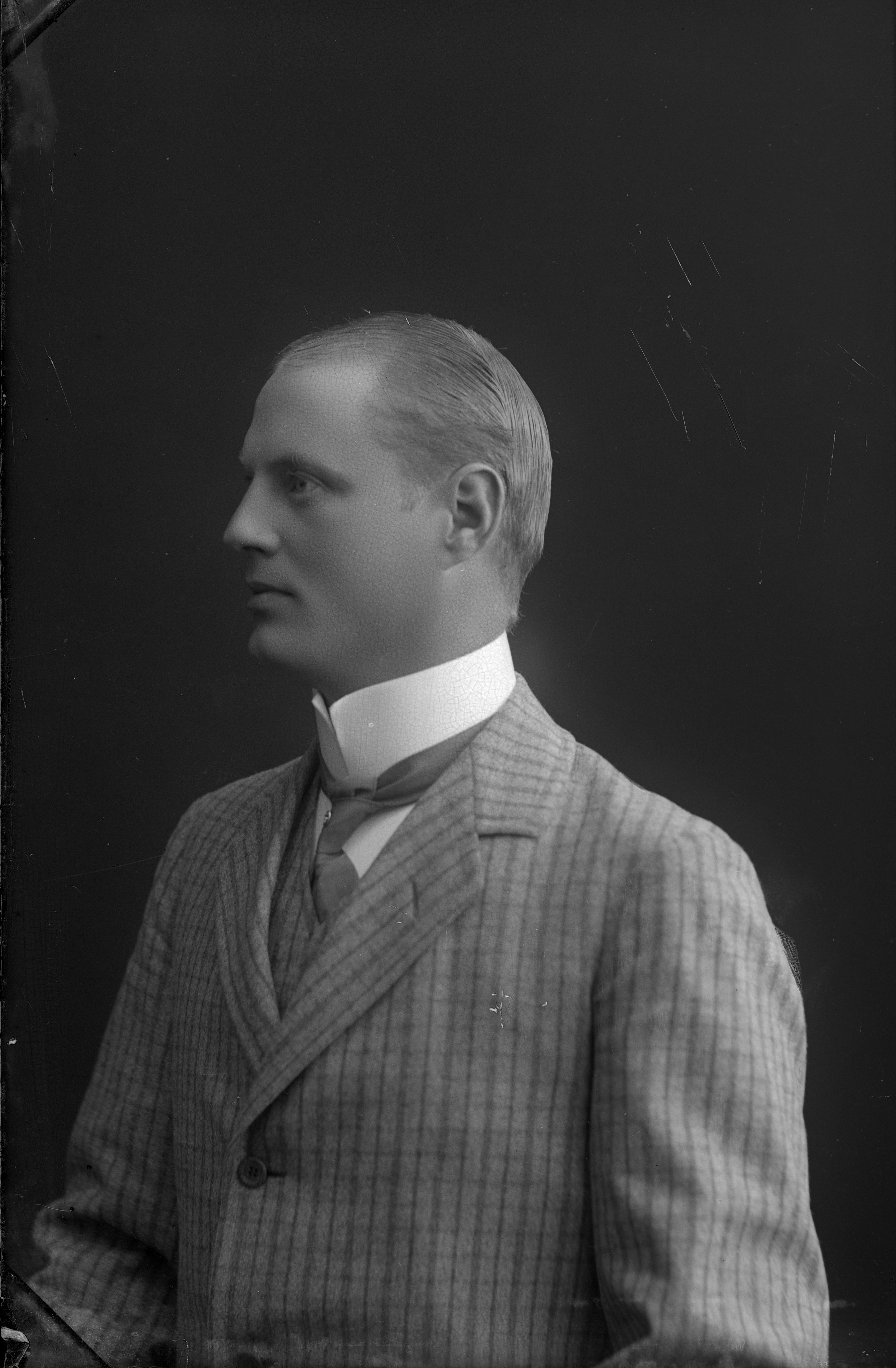 Porträtt i halvfigur av varvsingenjör Håkan Kristiansson, ansikte i profil.