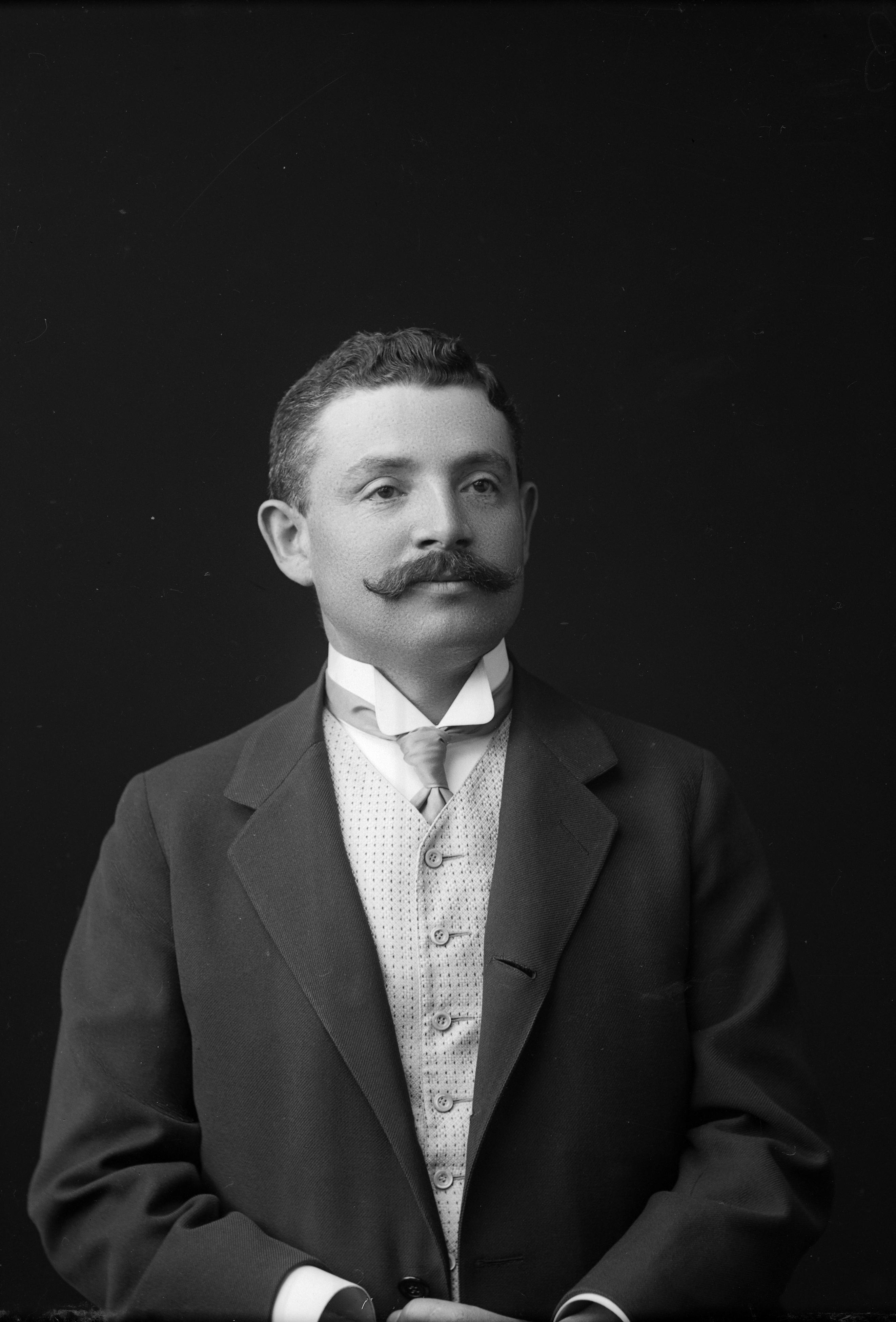Porträtt i halvfigur av skofabrikör David Schanzer.