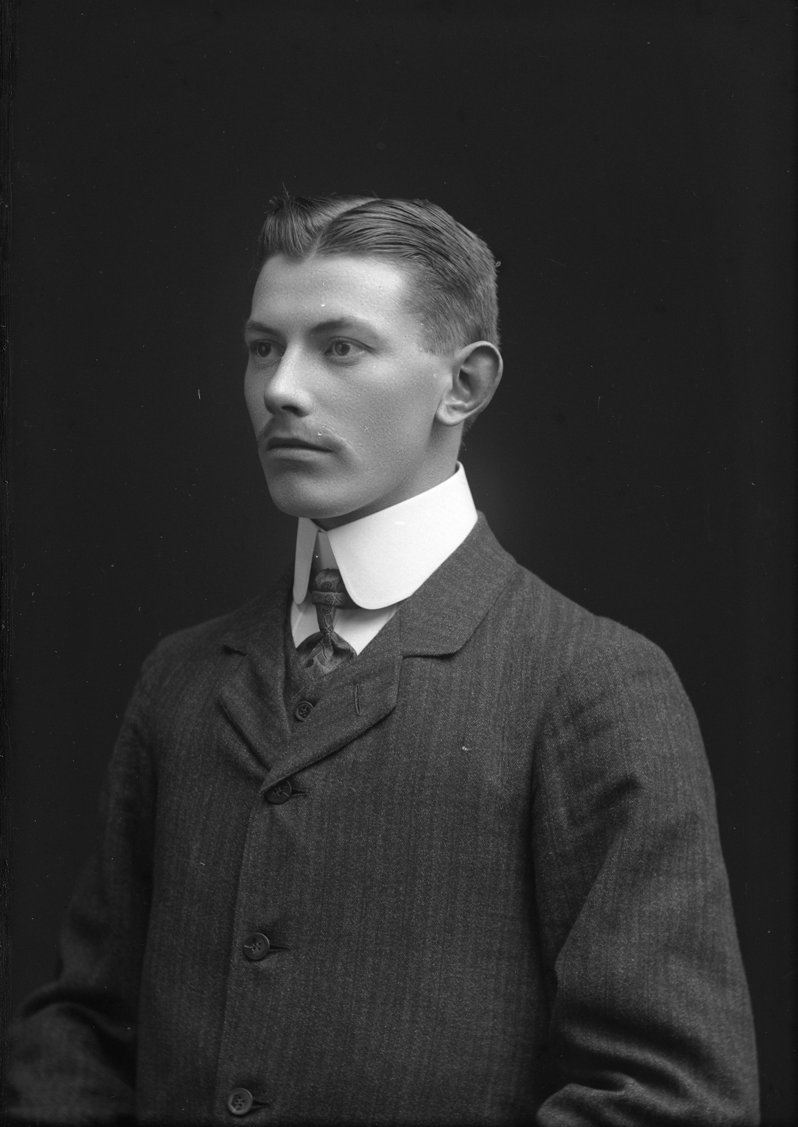 Porträtt i halvfigur av Oskar Olsson, student på Hvilan.
